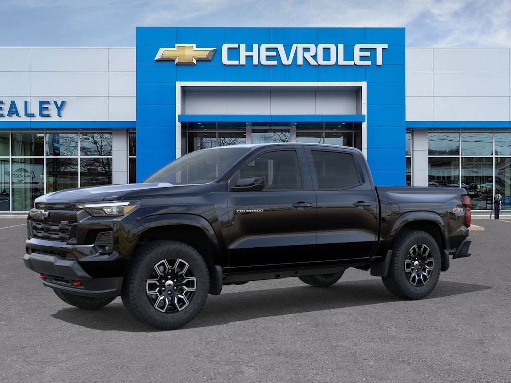Black 2026 Chevrolet Colorado Z71 4WD 8-Speed Automatic 2.7L I4 Turbocharged DOHC 16V LEV3-ULEV50 310hp 1st and 2nd Row All-Weather Floor Liner, 3 Years SiriusXM, 3.42 Rear Axle Ratio, 4-Way Manual Passenger Seat Adjuster, 4-Wheel Disc Brakes, 6 Speakers, 6-Speaker Audio System Feature, 8-Way Power Driver Seat Adjuster, ABS brakes, Adaptive Cruise Control, Air Conditioning, Alloy wheels, AM/FM radio: SiriusXM with 360L, Apple CarPlay/Android Auto, Auto High-beam Headlights, Auto-dimming Rear-View mirror, Automatic Emergency Braking, Automatic temperature control, Black Spray-on Bedliner with Chevrolet Logo, Bose Premium 7-Speaker Audio System Feature, Brake assist, Bumpers: body-color, Chevy Safety Assist, Cloth/Evotex Seat Trim, Compass, Delay-off headlights, Driver and Front Passenger Heated Seats, Driver and Front Passenger Ventilated Seats, Driver door bin, Driver Memory Settings, Driver Seatback Map Pocket, Driver vanity mirror, Dual front impact airbags, Dual front side impact airbags, Electronic Stability Control, Emergency communication system: OnStar, Following Distance Indicator, Forward Collision Alert, Front and Rear Splash Guards, Front anti-roll bar, Front Bucket Seats, Front Center Armrest, Front dual zone A/C, Front fog lights, Front License Plate Kit, Front Passenger Seatback Map Pocket, Front Pedestrian and Bicyclist Braking, Front reading lights, Front wheel independent suspension, HD Surround Vision, Heated door mirrors, Heated front seats, Heated Steering Wheel, Illuminated entry, IntelliBeam Automatic High Beam on/Off, Lane Keep Assist with Lane Departure Warning, Low tire pressure warning, Mobile Service Plus, Navigation System, Occupant sensing airbag, Outside temperature display, Overhead airbag, Overhead console, Panic alarm, Passenger door bin, Passenger vanity mirror, Perforated Leather-Appointed Seat Trim, Power door mirrors, Power Driver Lumbar Control Seat Adjuster, Power driver seat, Power Sliding Glass with Manual Shade Sunroof, Power steering, Power windows, Preferred Equipment Group 4Z7, Radio data system, Radio: 11.3 Diagonal Advanced Color LCD Display, Rear Center Armrest, Rear Pedestrian Alert, Rear reading lights, Rear step bumper, Rear window defroster, Remote keyless entry, Security system, SiriusXM with 360L Trial Subscription, Speed control, Speed-sensing steering, Split folding rear seat, Steering Wheel Mounted Audio Controls, Steering wheel mounted audio controls, Tachometer, Technology Package, Telescoping steering wheel, Tilt steering wheel, Traction control, Trip computer, Variably intermittent wipers, Wheels: 18 x 8.5 Android Dark Full Gloss Aluminum, Wireless Phone Projection, Z71 Convenience Package III.