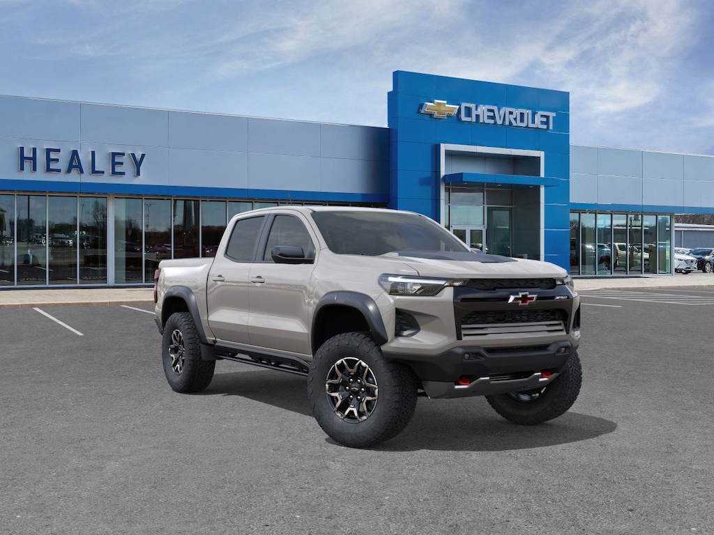 White Sands 2026 Chevrolet Colorado ZR2 4WD 8-Speed Automatic 2.7L I4 Turbocharged DOHC 16V LEV3-ULEV50 310hp 3.42 Rear Axle Ratio, 4-Way Manual Passenger Seat Adjuster, 4-Wheel Disc Brakes, 6 Speakers, 6-Speaker Audio System Feature, 8-Way Power Driver Seat Adjuster, ABS brakes, Adaptive Cruise Control, Air Conditioning, All-Weather Floor Mats, Alloy wheels, AM/FM radio: SiriusXM with 360L, Apple CarPlay/Android Auto, Auto High-beam Headlights, Auto-dimming Rear-View mirror, Automatic Emergency Braking, Automatic temperature control, Bose Premium 7-Speaker Audio System Feature, Brake assist, Chevy Safety Assist, Compass, Delay-off headlights, Driver and Front Passenger Heated Seats, Driver and Front Passenger Ventilated Seats, Driver door bin, Driver Memory Settings, Driver Seatback Map Pocket, Driver vanity mirror, Dual front impact airbags, Dual front side impact airbags, Electronic Stability Control, Emergency communication system: OnStar, Following Distance Indicator, Forward Collision Alert, Front anti-roll bar, Front Bucket Seats, Front Center Armrest, Front dual zone A/C, Front fog lights, Front License Plate Kit, Front Passenger Seatback Map Pocket, Front Pedestrian and Bicyclist Braking, Front reading lights, Front wheel independent suspension, HD Surround Vision, Heated door mirrors, Heated front seats, Heated steering wheel, Illuminated entry, IntelliBeam Automatic High Beam on/Off, Lane Keep Assist with Lane Departure Warning, Low tire pressure warning, Memory seat, Mobile Service Plus, Navigation System, Occupant sensing airbag, Outside temperature display, Overhead airbag, Overhead console, Panic alarm, Passenger door bin, Passenger vanity mirror, Perforated Leather-Appointed Seat Trim, Power door mirrors, Power Driver Lumbar Control Seat Adjuster, Power driver seat, Power Sliding Glass with Manual Shade Sunroof, Power steering, Power windows, Preferred Equipment Group 4ZR, Radio data system, Radio: 11.3 Diagonal Advanced Color LCD Display, Rear Pedestrian Alert, Rear reading lights, Rear seat center armrest, Rear step bumper, Rear window defroster, Remote keyless entry, Security system, SiriusXM with 360L Trial Subscription, Speed control, Speed-sensing steering, Split folding rear seat, Steering Wheel Mounted Audio Controls, Steering wheel mounted audio controls, Tachometer, Technology Package, Telescoping steering wheel, Tilt steering wheel, Traction control, Trip computer, Variably intermittent wipers, Ventilated front seats, Wheels: 17 x 8 Graphite and Oxide Gold Aluminum, Wireless Phone Projection, ZR2 Off-Road Package.
