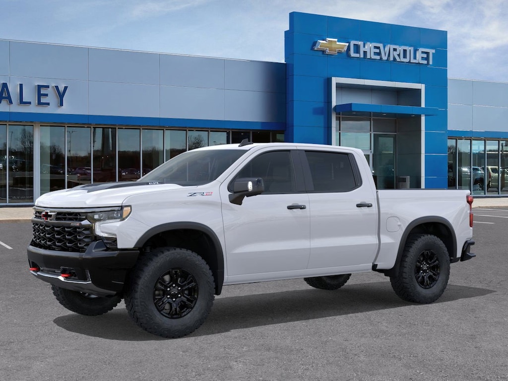 Summit White 2026 Chevrolet Silverado 1500 ZR2 4WD 10-Speed Automatic EcoTec3 6.2L V8 10-Way Power Driver Seat with Lumbar, 10-Way Power Passenger Seat Adjuster with Lumbar, 12.3 Multicolor Reconfigurable Digital Display, 120-Volt Bed Mounted Power Outlet, 120-Volt Interior Power Outlet, 15 Diagonal Multicolor Head-Up Display, 2 USB Data Ports, 220 Amp Alternator, 2nd Row Heated Outboard Seats, 3.23 Rear Axle Ratio, 4-Wheel Disc Brakes, 7 Speakers, 850 Cold-Cranking Amps Heavy-Duty Battery, ABS brakes, Adaptive Cruise Control, Air Conditioning, All-Weather Floor Liner, Alloy wheels, AM/FM radio: SiriusXM with 360L, Apple CarPlay/Android Auto, Auto High-beam Headlights, Auto-dimming door mirrors, Auto-dimming Rear-View mirror, Automatic Emergency Braking, Automatic temperature control, Bed View Camera, Block heater, Bluetooth® For Phone, Brake assist, Chevytec Spray-on Black Bedliner, Color-Keyed Carpeting Floor Covering, Compass, Deep-Tinted Glass, Delay-off headlights, Driver door bin, Driver Memory, Driver vanity mirror, Dual Active Exhaust, Dual Exhaust, Dual front impact airbags, Dual front side impact airbags, Dual Rear USB Ports (charge Only), Electric Rear-Window Defogger, Electronic Stability Control, Electronic Transmission Range Selector Shifter, Emergency communication system: OnStar, Engine Block Heater, EZ Lift Power Lock and Release Tailgate, Floor Mounted Center Console, Following Distance Indicator, Forward Collision Alert, Front anti-roll bar, Front Bucket Seats, Front Center Armrest, Front dual zone A/C, Front fog lights, Front LED Fog Lamps, Front Pedestrian Braking, Front Rain-Sensing Wipers, Front reading lights, Front wheel independent suspension, Fully automatic headlights, Garage door transmitter, HD Surround Vision, Heads-Up Display, Heated door mirrors, Heated Driver and Front Outboard Passenger Seats, Heated front seats, Heated rear seats, Heated Steering Wheel, Heated steering wheel, Heavy-Duty Air Filter, High Gloss Black Mirror Caps, Hill Descent Control, Hitch Guidance, Hitch Guidance with Hitch View, Illuminated entry, in-Vehicle Trailering System App, Integrated Trailer Brake Controller, IntelliBeam Automatic High Beam on/Off, Keyless Open and Start, Lane Keep Assist with Lane Departure Warning, LED Cargo Area Lighting, Low tire pressure warning, Memory seat, Mobile Service Plus, Multi-Flex Tailgate, Occupant sensing airbag, OnStar Services Capable, Outside Heated Power-Adjustable Mirrors, Outside temperature display, Overhead airbag, Overhead console, Panic alarm, Passenger door bin, Passenger vanity mirror, Perforated Leather Seat Trim, Performance Red Recovery Hooks, Perimeter Lighting, Power door mirrors, Power driver seat, Power Front Passenger Windows with Express Up/Down, Power Front Windows with Driver Express Up/Down, Power passenger seat, Power Rear Windows with Express Down, Power Sliding Rear Window with Rear Defogger, Power steering, Power Tilt and Telescoping Steering Column, Power windows, Premium audio system: Chevrolet Infotainment 3 Premium, Premium Bose 7-Speaker Sound System, Radio data system, Radio: Chevrolet Infotainment 3 Premium System, Rain sensing wipers, Rear Camera Mirror, Rear Cross Traffic Braking, Rear Pedestrian Alert, Rear reading lights, Rear seat center armrest, Rear step bumper, Rear Wheelhouse Liners, Rear window defroster, Remote keyless entry, Remote Vehicle Starter System, Safety Alert Seat, Security system, SiriusXM with 360L Trial Subscription, Speed control, Speed-sensing steering, Split folding rear seat, Steering Wheel Audio Controls, Steering wheel mounted audio controls, Tachometer, Technology Package, Teen Driver, Telescoping steering wheel, Theft Deterrent System (unauthorized Entry), Tilt steering wheel, Tire Pressure Monitoring System, Traction control, Trailer Camera Provisions, Trailer Side Blind Zone Alert, Trailering Package, Trip computer, Ultrasonic Front and Rear Park Assist, Universal H