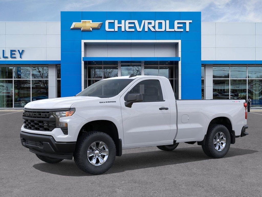 Summit White 2026 Chevrolet Silverado 1500 WT 4WD 10-Speed Automatic EcoTec3 5.3L V8 170 Amp Alternator, 2 Speakers, 2-Speaker Audio System, 220 Amp Alternator, 3 Years SiriusXM, 3.5 Monochromatic Display Driver Info Center, 4-Way Manual Driver Seat Adjuster, 4-Wheel Disc Brakes, 40/20/40 Front Split Bench Seat, ABS brakes, Air Conditioning, All-Weather Floor Liner, AM/FM radio, Apple CarPlay/Android Auto, Auto High-beam Headlights, Auto-Locking Rear Differential, Automatic Emergency Braking, Auxiliary External Transmission Oil Cooler, Black (Semi-Gloss) Front Bumper, Black (Semi-Gloss) Rear Bumper, Black Name Plates, Black Tailgate CHEVROLET Lettering, Bluetooth® For Phone, Brake assist, Chevytec Spray-on Black Bedliner, Color-Keyed Carpeting Floor Covering, Compass, Dark Essentials Package, Deep-Tinted Glass, Delay-off headlights, Driver door bin, Dual front impact airbags, Dual front side impact airbags, Electric Rear-Window Defogger, Electronic Cruise Control, Electronic Stability Control, Emergency communication system: OnStar, External Engine Oil Cooler, Following Distance Indicator, Forward Collision Alert, Front anti-roll bar, Front Black Bowtie Emblem, Front Center Armrest w/Storage, Front Frame-Mounted Black Recovery Hooks, Front License Plate Kit, Front Pedestrian Braking, Front reading lights, Front Rubberized Vinyl Floor Mats, Front wheel independent suspension, Fully automatic headlights, HD Rear Vision Camera, Heated door mirrors, Heated Power-Adjustable Outside Mirrors, Heavy-Duty Air Filter, Hitch Guidance, Illuminated entry, Inside Rearview Mirror with Tilt, IntelliBeam Automatic High Beam on/Off, Lane Keep Assist with Lane Departure Warning, Liner Protection Package (LPO), Locking Tailgate, Low tire pressure warning, Manual Tailgate Function with No EZ Lift, Manual Tilt Wheel Steering Column, Mobile Service Plus, Molded Black Splash Guards, Occupant sensing airbag, OnStar Services Capable, Outside temperature display, Overhead airbag, Overhead console, Panic alarm, Passenger door bin, Passenger vanity mirror, Power door mirrors, Power Front Windows with Driver Express Up/Down, Power Front Windows with Passenger Express Down, Power steering, Power windows, Preferred Equipment Group 1WT, Premium audio system: Chevrolet Infotainment 3, Radio data system, Radio: Chevrolet Infotainment 3 System, Rear reading lights, Rear step bumper, Rear Wheel House Liners, Remote Keyless Entry, Remote keyless entry, Rubberized-Vinyl Floor Covering, SiriusXM Delete, SiriusXM Trial Subscription, Solar Absorbing Tinted Glass, Speed control, Speed-sensing steering, Standard Suspension Package, Standard Tailgate, Tachometer, Teen Driver, Tilt steering wheel, Tire Pressure Monitoring System, Traction control, Trailering Package, Trip computer, Upfitter Switch Kit (5), Variably intermittent wipers, Vinyl Seat Trim, Voltmeter, Wheels: 17 x 8 Bright Silver Painted Aluminum, Wheels: 17 x 8 Ultra Silver Painted Steel, Wi-Fi Hot Spot Capable, Work Truck Package, WT Convenience Package, WT Value Package.