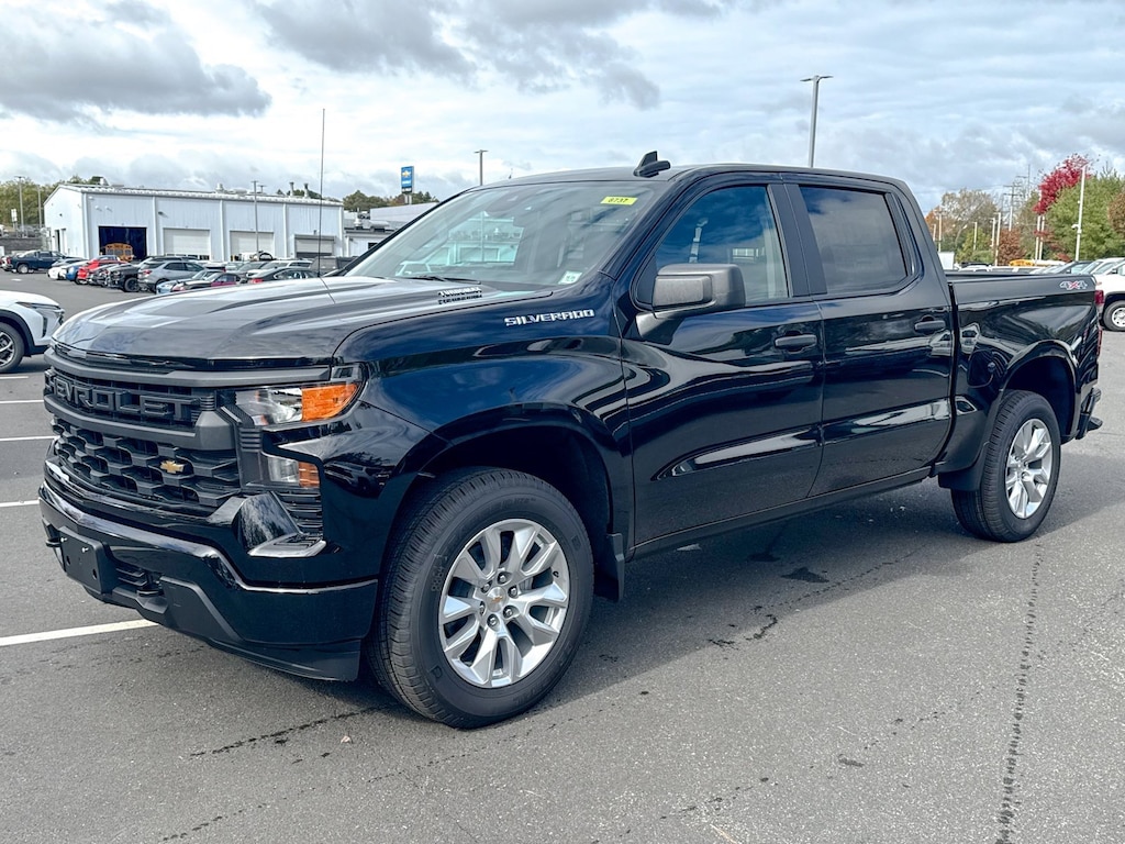 Black 2026 Chevrolet Silverado 1500 Custom 4WD 8-Speed Automatic 2.7L I4 Turbocharged DOHC 16V LEV3-SULEV30 310hp 10-Way Power Driver Seat w/Lumbar, 120-Volt Bed Mounted Power Outlet, 120-Volt Interior Power Outlet, 3.42 Rear Axle Ratio, 3.5 Monochromatic Display Driver Info Center, 4-Wheel Disc Brakes, 40/20/40 Front Split-Bench Seat, 6 Speakers, 6-Speaker Audio System, ABS brakes, Air Conditioning, Alloy wheels, AM/FM radio: SiriusXM, Apple CarPlay/Android Auto, Auto High-beam Headlights, Auto-Locking Rear Differential, Automatic Emergency Braking, Bluetooth® For Phone, Brake assist, Bumpers: body-color, Cloth Seat Trim, Color-Keyed Carpeting Floor Covering, Compass, Custom Convenience Package, Custom Value Package, Deep-Tinted Glass, Delay-off headlights, Deleted Mobile Service Plus, Driver door bin, Driver vanity mirror, Dual front impact airbags, Dual front side impact airbags, Dual Rear USB Ports (Charge Only), Electric Rear-Window Defogger, Electronic Cruise Control, Electronic Stability Control, Emergency communication system: OnStar, EZ Lift Power Lock & Release Tailgate, Following Distance Indicator, Forward Collision Alert, Front anti-roll bar, Front Center Armrest w/Storage, Front Frame-Mounted Black Recovery Hooks, Front License Plate Kit, Front Pedestrian Braking, Front reading lights, Front Rubberized Vinyl Floor Mats, Front wheel independent suspension, Fully automatic headlights, HD Rear Vision Camera, Heated door mirrors, High Capacity Suspension Package, Hitch Guidance, Illuminated entry, Integrated Trailer Brake Controller, IntelliBeam Automatic High Beam On/Off, Lane Keep Assist w/Lane Departure Warning, LED Cargo Area Lighting, Low tire pressure warning, Manual Tilt Wheel Steering Column, Occupant sensing airbag, OnStar Services Capable, Outside temperature display, Overhead airbag, Overhead console, Panic alarm, Passenger door bin, Passenger vanity mirror, Power door mirrors, Power driver seat, Power Front Windows w/Driver Express Up/Down, Power Front Windows w/Passenger Express Down, Power Rear Windows w/Express Down, Power steering, Power windows, Preferred Equipment Group 1CX, Premium audio system: Chevrolet Infotainment 3, Radio data system, Radio: Chevrolet Infotainment 3 System, Rear 60/40 Folding Bench Seat (Folds Up), Rear reading lights, Rear Rubberized-Vinyl Floor Mats, Rear step bumper, Rear Wheelhouse Liners, Rear window defroster, Remote Keyless Entry, Remote keyless entry, Remote Vehicle Starter System, Security system, SiriusXM Trial Subscription, Speed control, Speed-sensing steering, Split folding rear seat, Standard Tailgate, Tachometer, Teen Driver, Theft Deterrent System (Unauthorized Entry), Tilt steering wheel, Tire Pressure Monitoring System, Traction control, Trailering Package, Trip computer, Variably intermittent wipers, Voltmeter, Wheels: 20 x 9 Bright Silver Painted Aluminum, Wi-Fi Hot Spot Capable.