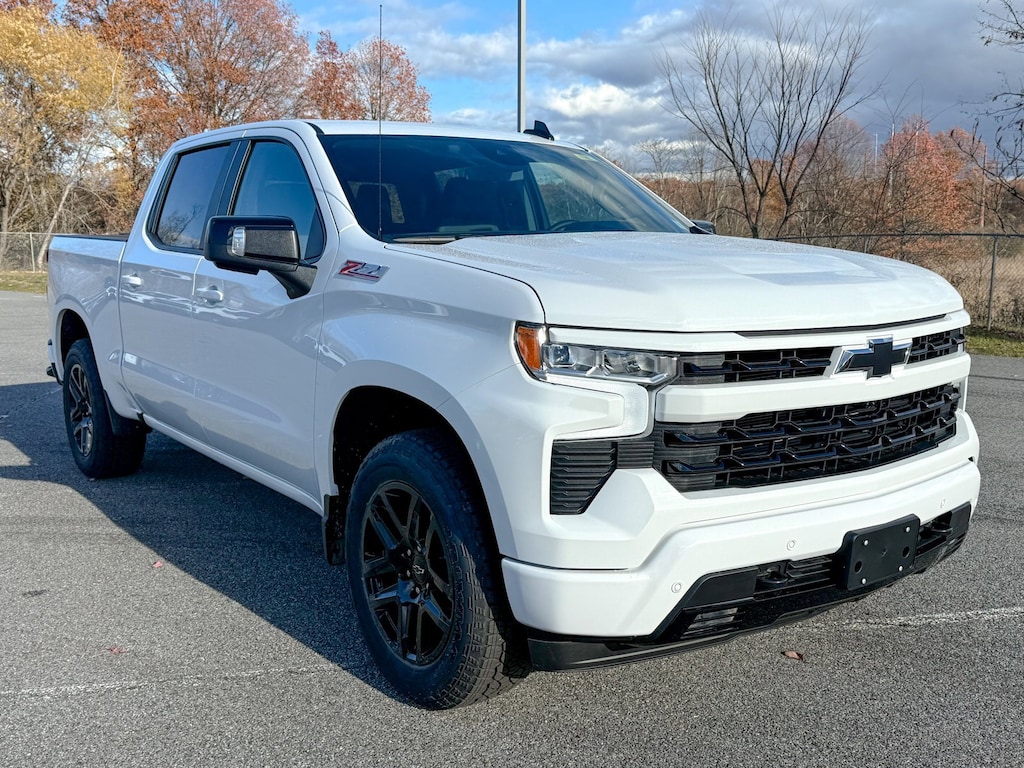 Summit White 2026 Chevrolet Silverado 1500 RST 4WD 10-Speed Automatic EcoTec3 5.3L V8 10-Way Power Driver Seat w/Lumbar, 12.3 Multicolor Reconfigurable Digital Display, 120-Volt Bed Mounted Power Outlet, 120-Volt Interior Power Outlet, 170 Amp Alternator, 2 USB Data Ports, 220 Amp Alternator, 3.23 Rear Axle Ratio, 4-Wheel Disc Brakes, 40/20/40 Front Split-Bench Seat, 6 Speakers, 6-Speaker Audio System, ABS brakes, Adaptive Cruise Control, Air Conditioning, All Star Edition Plus, All-Star Edition, All-Weather Floor Liner (LPO) (AAK), Alloy wheels, AM/FM radio: SiriusXM with 360L, Apple CarPlay/Android Auto, Auto High-beam Headlights, Auto-Locking Rear Differential, Automatic Emergency Braking, Automatic temperature control, Auxiliary External Transmission Oil Cooler, Bluetooth® For Phone, Brake assist, Bumpers: body-color, Chevytec Spray-On Black Bedliner, Cloth Seat Trim, Color-Keyed Carpeting Floor Covering, Compass, Convenience Package, Convenience Package II, Deep-Tinted Glass, Delay-off headlights, Deleted Mobile Service Plus, Driver door bin, Driver vanity mirror, Dual Exhaust w/Polished Outlets, Dual front impact airbags, Dual front side impact airbags, Dual Rear USB Ports (Charge Only), Dual-Zone Automatic Climate Control, Electric Rear-Window Defogger, Electronic Cruise Control, Electronic Stability Control, Electronic Transmission Range Selector Shifter, Emergency communication system: OnStar, External Engine Oil Cooler, EZ Lift Power Lock & Release Tailgate, Floor Mounted Center Console, Following Distance Indicator, Forward Collision Alert, Front anti-roll bar, Front Bucket Seats, Front Center Armrest w/Storage, Front dual zone A/C, Front fog lights, Front Frame-Mounted Black Recovery Hooks, Front LED Fog Lamps, Front License Plate Kit, Front Pedestrian Braking, Front reading lights, Front Rubberized Vinyl Floor Mats, Front wheel independent suspension, Fully automatic headlights, HD Rear Vision Camera, HD Surround Vision, Heated door mirrors, Heated Driver & Front Outboard Passenger Seats, Heated front seats, Heated Power-Adjustable Outside Mirrors, Heated Steering Wheel, Heated steering wheel, Heavy-Duty Air Filter, High Capacity Suspension Package, High Gloss Black Mirror Caps, Hill Descent Control, Hitch Guidance, Hitch Guidance w/Hitch View, Illuminated entry, In-Vehicle Trailering System App, Inside Rear-View Mirror w/Tilt, Integrated Trailer Brake Controller, IntelliBeam Automatic High Beam On/Off, Keyless Open & Start, Lane Keep Assist w/Lane Departure Warning, Leather Package, Leather-Appointed Front Seat Trim, LED Cargo Area Lighting, Low tire pressure warning, Manual Tilt/Telescoping Steering Column, Occupant sensing airbag, Off-Road Suspension, OnStar Services Capable, Outside temperature display, Overhead airbag, Overhead console, Panic alarm, Passenger door bin, Passenger vanity mirror, Perimeter Lighting, Power door mirrors, Power driver seat, Power Front Windows w/Driver Express Up/Down, Power Front Windows w/Passenger Express Down, Power Rear Windows w/Express Down, Power Sliding Rear Window w/Rear Defogger, Power steering, Power windows, Preferred Equipment Group 1SP, Premium audio system: Chevrolet Infotainment 3 Premium, Premium Bose 7-Speaker Sound System, Protection Package, Radio data system, Radio: Chevrolet Infotainment 3 Premium System, Rear 60/40 Folding Bench Seat (Folds Up), Rear Cross Traffic Braking, Rear Pedestrian Alert, Rear reading lights, Rear Rubberized-Vinyl Floor Mats, Rear step bumper, Rear Wheelhouse Liners, Rear window defroster, Remote keyless entry, Remote Vehicle Starter System, RST All Star Premium Package, Safety Package, Security system, Single Outlet Exhaust, SiriusXM w/360L Trial Subscription, Speed control, Speed-sensing steering, Split folding rear seat, Standard Suspension Package, Standard Tailgate, Steering Wheel Audio Controls, Steering wheel mounted audio controls, Tachometer, Teen Driver, Telescoping steering