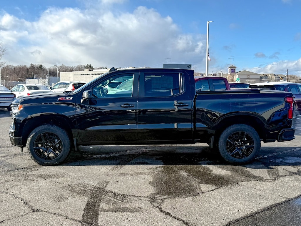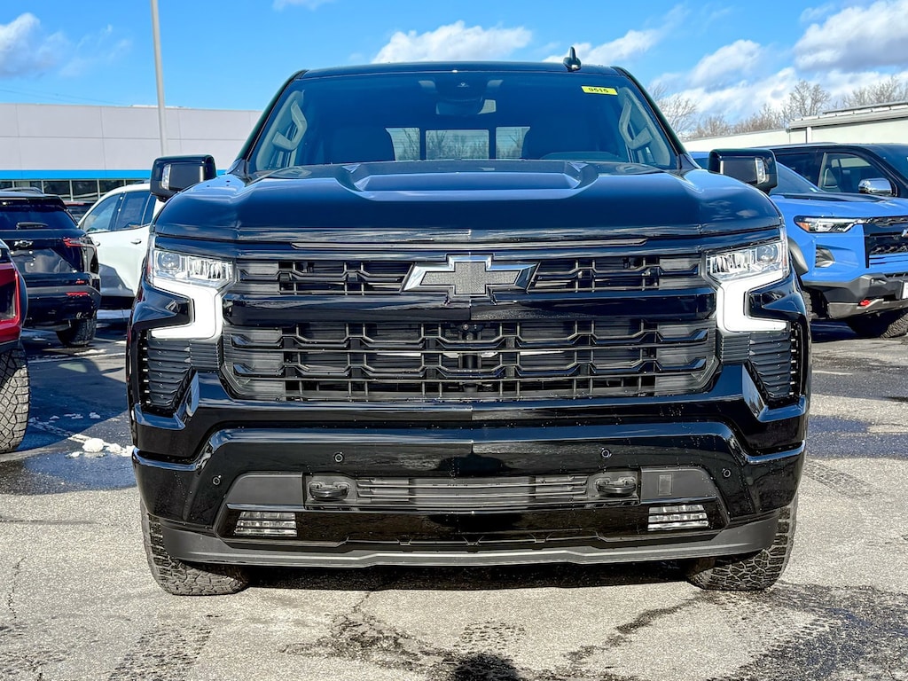 Black 2026 Chevrolet Silverado 1500 RST 4WD 10-Speed Automatic EcoTec3 5.3L V8 10-Way Power Driver Seat w/Lumbar, 12.3 Multicolor Reconfigurable Digital Display, 120-Volt Bed Mounted Power Outlet, 120-Volt Interior Power Outlet, 2 USB Data Ports, 220 Amp Alternator, 3.23 Rear Axle Ratio, 4-Wheel Disc Brakes, 40/20/40 Front Split-Bench Seat, 6 Speakers, 6-Speaker Audio System, ABS brakes, Adaptive Cruise Control, Air Conditioning, All Star Edition Plus, All-Star Edition, All-Weather Floor Liner (LPO) (AAK), Alloy wheels, AM/FM radio: SiriusXM with 360L, Apple CarPlay/Android Auto, Auto High-beam Headlights, Auto-Locking Rear Differential, Automatic Emergency Braking, Automatic temperature control, Bluetooth® For Phone, Brake assist, Bumpers: body-color, Cloth Seat Trim, Color-Keyed Carpeting Floor Covering, Compass, Convenience Package, Convenience Package II, Deep-Tinted Glass, Delay-off headlights, Driver door bin, Driver vanity mirror, Dual Exhaust w/Polished Outlets, Dual front impact airbags, Dual front side impact airbags, Dual Rear USB Ports (Charge Only), Dual-Zone Automatic Climate Control, Electric Rear-Window Defogger, Electronic Cruise Control, Electronic Stability Control, Electronic Transmission Range Selector Shifter, Emergency communication system: OnStar, EZ Lift Power Lock & Release Tailgate, Floor Mounted Center Console, Following Distance Indicator, Forward Collision Alert, Front anti-roll bar, Front Bucket Seats, Front Center Armrest w/Storage, Front dual zone A/C, Front fog lights, Front Frame-Mounted Black Recovery Hooks, Front LED Fog Lamps, Front Pedestrian Braking, Front reading lights, Front Rubberized Vinyl Floor Mats, Front wheel independent suspension, Fully automatic headlights, HD Rear Vision Camera, HD Surround Vision, Heated door mirrors, Heated Driver & Front Outboard Passenger Seats, Heated front seats, Heated Power-Adjustable Outside Mirrors, Heated Steering Wheel, Heated steering wheel, Heavy-Duty Air Filter, High Capacity Suspension Package, High Gloss Black Mirror Caps, Hill Descent Control, Hitch Guidance, Hitch Guidance w/Hitch View, Illuminated entry, In-Vehicle Trailering System App, Inside Rear-View Mirror w/Tilt, Integrated Trailer Brake Controller, IntelliBeam Automatic High Beam On/Off, Keyless Open & Start, Lane Keep Assist w/Lane Departure Warning, Leather Package, Leather-Appointed Front Seat Trim, LED Cargo Area Lighting, Low tire pressure warning, Manual Tilt/Telescoping Steering Column, Occupant sensing airbag, Off-Road Suspension, OnStar Services Capable, Outside temperature display, Overhead airbag, Overhead console, Panic alarm, Passenger door bin, Passenger vanity mirror, Perimeter Lighting, Power door mirrors, Power driver seat, Power Front Windows w/Driver Express Up/Down, Power Front Windows w/Passenger Express Down, Power Rear Windows w/Express Down, Power Sliding Rear Window w/Rear Defogger, Power steering, Power windows, Premium audio system: Chevrolet Infotainment 3 Premium, Premium Bose 7-Speaker Sound System, Radio data system, Radio: Chevrolet Infotainment 3 Premium System, Rear 60/40 Folding Bench Seat (Folds Up), Rear Cross Traffic Braking, Rear Pedestrian Alert, Rear reading lights, Rear Rubberized-Vinyl Floor Mats, Rear step bumper, Rear window defroster, Remote keyless entry, Remote Vehicle Starter System, RST All Star Premium Package, Safety Package, Security system, Single Outlet Exhaust, SiriusXM w/360L Trial Subscription, Speed control, Speed-sensing steering, Split folding rear seat, Standard Suspension Package, Standard Tailgate, Steering Wheel Audio Controls, Steering wheel mounted audio controls, Tachometer, Teen Driver, Telescoping steering wheel, Theft Deterrent System (Unauthorized Entry), Tilt steering wheel, Tire Pressure Monitoring System, Traction control, Trailer Camera Provisions, Trailer Side Blind Zone Alert, Trailering Package, Trip computer, Ultrasonic Front & Rear Park Assist, Universa