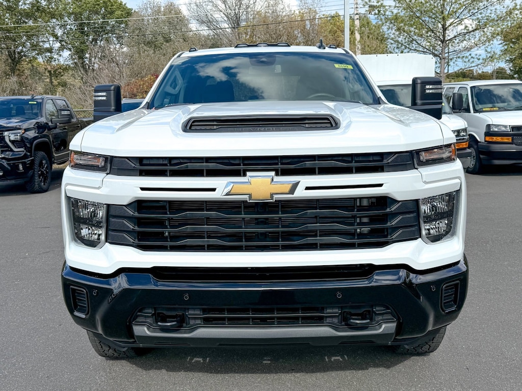 Summit White 2026 Chevrolet Silverado 2500HD Custom 4WD 10-Speed Automatic 6.6L V8 10-Way Power Driver Seat Adjuster w/Lumbar, 120-Volt Bed Mounted Power Outlet, 120-Volt Interior Power Outlet, 170 Amp Alternator, 2-Speed Electronic Shift Transfer Case, 3.5 Diagonal Monochromatic Display DIC, 3.73 Rear Axle Ratio, 4-Wheel Disc Brakes, 6 Speakers, 6-Speaker Audio System, 6 Rectangular Black Tubular Assist Steps (LPO), 720 Cold-Cranking Amps Heavy-Duty Battery, ABS brakes, Air Conditioning, Alloy wheels, AM/FM radio: SiriusXM with 360L, Apple CarPlay/Android Auto, Auto High-beam Headlights, Auto-Dimming Inside Rear-View Mirror, Black Chevytec Spray-On Bedliner, Black Mirror Caps, Bluetooth® For Phone, Brake assist, Chevrolet Connected Access Capable, Cloth Seat Trim, Color-Keyed Carpeting Floor Covering, Compass, Custom Convenience Package, Custom Value Package, CX Safety Package, Deep-Tinted Glass, Delay-off headlights, Driver door bin, Dual front impact airbags, Dual front side impact airbags, Dual Rear USB Ports (Charge Only), Durabed Pickup Bed, Electric Rear-Window Defogger, Electronic Cruise Control w/Set & Resume Speed, Electronic Stability Control, Emergency communication system: OnStar, EZ Lift Power Lock & Release Tailgate, Front 40/20/40 Split-Bench Seats w/Lockable Storage, Front anti-roll bar, Front Center Armrest w/Storage, Front License Plate Kit, Front reading lights, Front Rubberized Vinyl Floor Mats, Front wheel independent suspension, Fully automatic headlights, Gooseneck/5th Wheel Prep Package, HD Rear Vision Camera, Heated & Auto-Dimming Vertical Trailering Mirrors, Heated door mirrors, Heated Vertical Trailering Mirrors, Illuminated entry, Lane Change Alert w/Side Blind Zone Alert, LED Cargo Area Lighting, LED Smoked Amber Roof Marker Lamps, Locking Tailgate, Low tire pressure warning, Manual Tailgate Function w/No EZ Lift, Manual Tilt-Wheel Steering Column, Mobile Service Plus, Occupant sensing airbag, OnStar Services Capable, Outside temperature display, Overhead airbag, Overhead console, Panic alarm, Passenger door bin, Passenger vanity mirror, Power Door Locks, Power door mirrors, Power Front Windows w/Driver Express Up/Down, Power Front Windows w/Passenger Express Down, Power Rear Windows w/Express Down, Power steering, Power windows, Preferred Equipment Group 1CX, Premium audio system: Chevrolet Infotainment 3, Push Button Start, Radio: Chevrolet Infotainment 3 System, Rear 60/40 Folding Bench Seat (Folds Up), Rear Cross Traffic Alert, Rear reading lights, Rear Rubberized Vinyl Floor Mats, Rear step bumper, Remote Keyless Entry, Remote keyless entry, Remote Vehicle Starter System, SiriusXM w/360L Trial Subscription, Speed control, Split folding rear seat, Standard Tailgate, Suspension Package, Tachometer, Tilt steering wheel, Traction control, Trip computer, Turn signal indicator mirrors, Ultrasonic Front & Rear Park Assist, Unauthorized Entry Theft-Deterrent System, Variably intermittent wipers, Voltmeter, Wheels: 20 10-Spoke Machined Aluminum, Wi-Fi Hotspot Capable, Wireless Phone Projection.