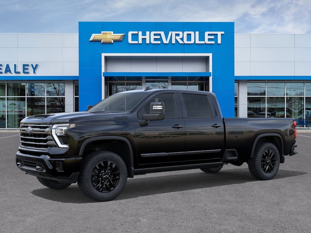 Black 2026 Chevrolet Silverado 2500HD High Country 4WD 10-Speed Automatic Duramax 6.6L V8 Turbodiesel 10-Way Power Driver Seat Adjuster w/Lumbar, 10-Way Power Passenger Seat Adjuster w/Lumbar, 120-Volt Bed Mounted Power Outlet, 120-Volt Interior Power Outlet, 15 Diagonal Multicolor Head-Up Display, 170 Amp Alternator, 220 Amp Alternator, 3 Years SiriusXM, 4-Wheel Disc Brakes, 6 Rectangular Chromed Tubular Assist Steps, 7 Speakers, 720 Cold-Cranking Amps Heavy-Duty Battery, ABS brakes, Air Conditioning, Alloy wheels, AM/FM radio: SiriusXM with 360L, Apple CarPlay/Android Auto, Auto High-beam Headlights, Auto-dimming door mirrors, Auto-Dimming Inside Rear-View Mirror, Auto-dimming Rear-View mirror, Automatic temperature control, Bed View Camera w/2 Trailer Camera Provisions, Black Chevytec Spray-On Bedliner, Black Molded Splash Guards (LPO), Bluetooth® For Phone, Body-Color Mirror Caps, Bodyside moldings, BOSE Premium 7-Speaker Sound System, Brake assist, Bumpers: body-color, Chevrolet Connected Access Capable, Chrome Door Handles, Chrome Mirror Caps, Color-Keyed Carpeting Floor Covering, Compass, Deep-Tinted Glass, Delay-off headlights, Driver door bin, Driver Memory, Driver vanity mirror, Dual front impact airbags, Dual front side impact airbags, Durabed Pickup Bed, Electric Rear-Window Defogger, Electronic Stability Control, Emergency communication system: OnStar, Engine Block Heater, Exhaust Brake, Floor-Mounted Center Console, Front anti-roll bar, Front Bucket Seats, Front Carpeted Floor Mats, Front Center Armrest, Front Chrome Recovery Hooks, Front dual zone A/C, Front fog lights, Front LED Fog Lamps, Front License Plate Kit, Front Rain-Sensing Wipers, Front reading lights, Front wheel independent suspension, Fully automatic headlights, Garage door transmitter, Genuine wood console insert, Genuine wood dashboard insert, Genuine wood door panel insert, Heated 2nd Row Outboard Seats, Heated door mirrors, Heated Driver & Front Outboard Passenger Seating, Heated front seats, Heated rear seats, Heated Steering Wheel, Heated steering wheel, High Gloss Black Door Handles, Hill Descent Control, Hitch Guidance w/Hitch View, Illuminated entry, In-Vehicle Trailering App System, Keyless Open & Start, LED Cargo Area Lighting, Low tire pressure warning, Manual Tilt & Telescoping Steering Column, Memory seat, Midnight Edition, Mobile Service Plus, Occupant sensing airbag, OnStar Services Capable, Outside temperature display, Overhead airbag, Overhead console, Panic alarm, Passenger door bin, Passenger vanity mirror, Perforated Leather Seat Trim, Polished Exhaust Tip, Power Door Locks, Power door mirrors, Power driver seat, Power Front Windows w/Driver Express Up/Down, Power Front Windows w/Passenger Express Up/Down, Power passenger seat, Power Rear Windows w/Express Down, Power Sliding Rear Window w/Defogger, Power steering, Power Sunroof, Power windows, Power-Retractable Black Assist Steps, Preferred Equipment Group 3LZ, Premium audio system: Chevrolet Infotainment 3 Premium, Push Button Start, Pwr Up/Down Tailgate Function w/Pwr Lock & Release, Radio: Chevrolet Infotainment 3 Premium System, Rain sensing wipers, Rear Camera Mirror, Rear Carpeted Floor Mats, Rear Cross Traffic Alert, Rear reading lights, Rear seat center armrest, Rear step bumper, Rear Wheelhouse Liners, Rear window defroster, Remote keyless entry, Remote Vehicle Starter System, Security system, SiriusXM w/360L Trial Subscription, Snow Plow Prep/Camper Package, Speed control, Speed-sensing steering, Split folding rear seat, Standard Tailgate, Steering Wheel Audio Controls, Steering wheel mounted audio controls, Suspension Package, Tachometer, Technology Package, Telescoping steering wheel, Tilt steering wheel, Traction control, Trailer Camera Provisions, Trip computer, Turn signal indicator mirrors, Ultrasonic Front & Rear Park Assist, Unauthorized Entry Theft-Deterrent System, Universal Home Remote, Up-Level Rear Seat w