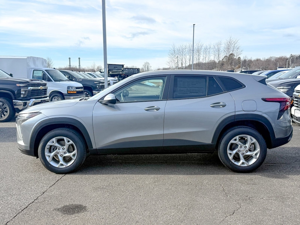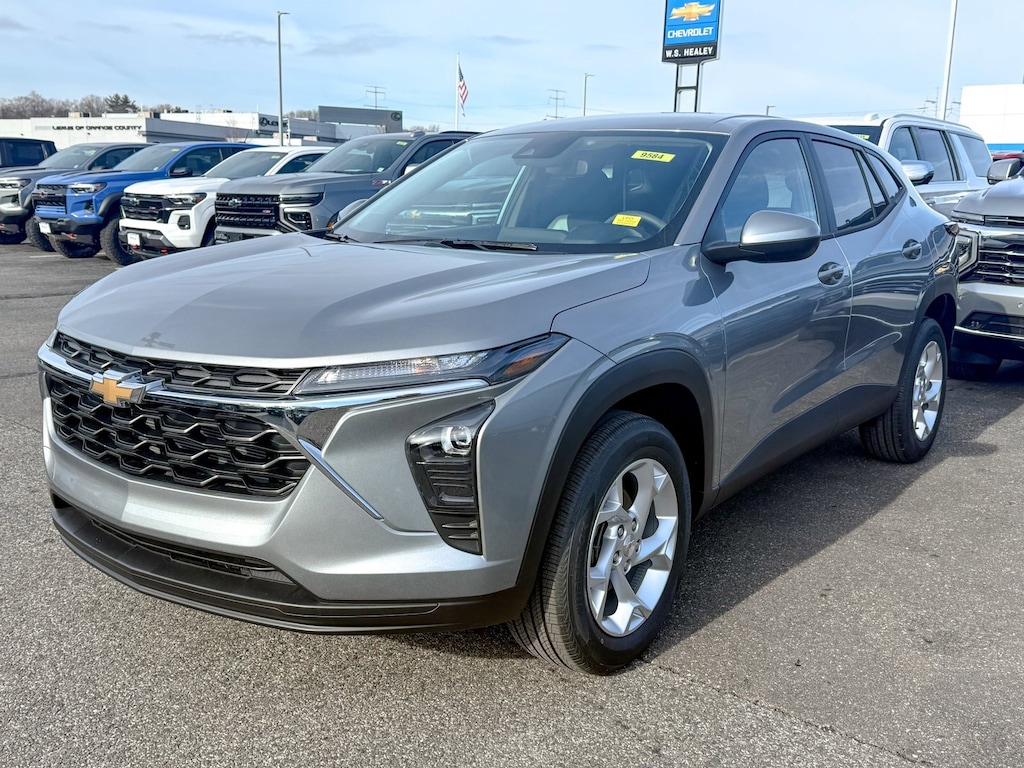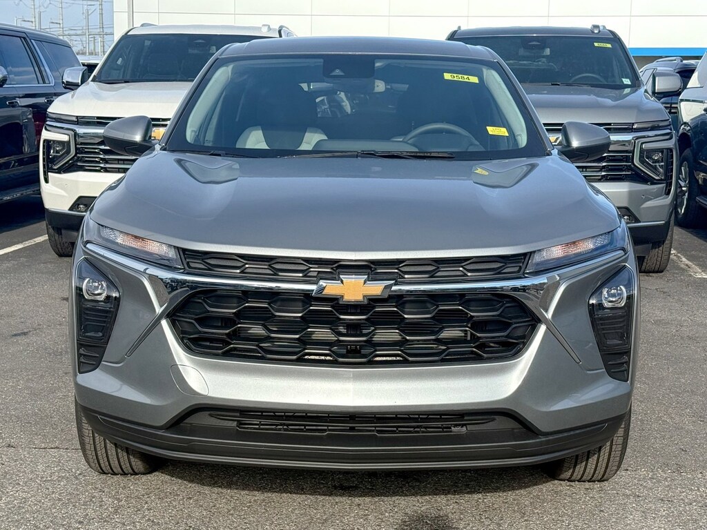 Sterling Gray Metallic 2026 Chevrolet Trax LS FWD 6-Speed Automatic ECOTEC 1.2L Turbo 2-Way Adjustable Front Head Restraints, 3.50 Final Drive Axle Ratio, 4 Speakers, 4-Speaker Audio System Feature, 4-Way Manual Front Passenger Seat Adjuster, 4-Wheel Disc Brakes, 6-Way Manual Driver Seat Adjuster, ABS brakes, Air Conditioning, AM/FM radio: SiriusXM, Auto High-beam Headlights, Body-Color Painted Mirror Caps, Brake assist, Bumpers: body-color, Carpeted Rear Floor Mats, Cloth Seat Trim, Compass, Delay-off headlights, Deleted Mobile Service Plus, Driver door bin, Driver vanity mirror, Dual front impact airbags, Dual front side impact airbags, Electronic Stability Control, Emergency communication system: OnStar One Essentials, Exterior Parking Camera Rear, Front and Rear Jet Black All-Weather Floor Mats, Front anti-roll bar, Front Bucket Seats, Front Center Armrest, Front reading lights, Front wheel independent suspension, Fully automatic headlights, Heated Driver and Front Passenger Seats, Heated Power-Adjustable Outside Mirrors, Illuminated entry, License Plate Front Mounting Package, Low tire pressure warning, LS Convenience Package, Occupant sensing airbag, Outside temperature display, Overhead airbag, Overhead console, Panic alarm, Passenger door bin, Passenger vanity mirror, Power door mirrors, Power steering, Power windows, Preferred Equipment Group 1LS, Premium audio system: Chevrolet Infotainment 3, Radio data system, Radio: Chevrolet Infotainment 3 System with AM/FM, Rear window defroster, Rear window wiper, Remote keyless entry, Remote Start, Security system, SiriusXM Trial Subscription, Speed control, Split folding rear seat, Spoiler, Steering wheel mounted audio controls, Tachometer, Telescoping steering wheel, Tilt steering wheel, Traction control, Trip computer, Variably intermittent wipers, Wheels: 17 Silver Painted Aluminum, Wheels: 17 Steel with Covers, Wireless Apple CarPlay/Wireless Android Auto.