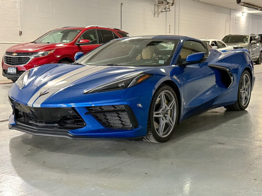 $98k original MSRP!! Elkhart Lake Blue Metallic 2022 Chevrolet Corvette Stingray 3LT RWD 8 Speed Dual Clutch 6.2L V8 Electronic Limited-Slip Differential, Heavy-Duty Cooling System, Performance Exhaust w/Stainless-Steel Tips, Performance Rear Axle Ratio, Rear Z51 Spoiler, Z51 Performance Brakes, Z51 Performance Package, Z51 Performance Suspension, 14 Speakers, 2 Cargo Nets, 4-Wheel Disc Brakes, 8-Way Power Driver Seat Adjuster, 8-Way Power Passenger Seat Adjuster, ABS brakes, Air Conditioning, Alloy wheels, AM/FM radio: SiriusXM, Apple CarPlay/Android Auto, Auto-dimming door mirrors, Auto-dimming Rear-View mirror, Automatic temperature control, Battery Protection Package, Black Composite Rocker Extensions (LPO), Bose Performance Series Sound System w/14 Speakers, Brake assist, Bumpers: body-color, Carbon Fiber Interior Trim, Compass, Convertible HardTop, Convertible roof lining, Convertible Top w/Carbon Flash Nacelles, Custom Leather Wrapped Interior Package, Delay-off headlights, Driver door bin, Driver Power Bolster Seat Adjuster, Driver vanity mirror, Dual front impact airbags, Dual front side impact airbags, Edge Yellow-Painted Calipers, Electrical Theft Deterrent System, Electronic Stability Control, Emergency communication system: OnStar and Chevrolet connected services capable, Four wheel independent suspension, Front anti-roll bar, Front Bucket Seats, Front Center Armrest, Front dual zone A/C, Front License Plate Bracket, Front Lift Adjustable Height w/Memory, Front reading lights, Fully automatic headlights, Garage door transmitter, Glass rear window, GT2 Bucket Seats, HD Front & Rear Vision Cameras, HD Radio, Head-Up Display, Heads-Up Display, Heated & Vented Driver & Passenger Seats, Heated door mirrors, Heated front seats, Heated Steering Wheel, Heated steering wheel, Illuminated entry, Integrated roll-over protection, Leather Shift Knob, Leather steering wheel, Low tire pressure warning, Memory Driver & Passenger Convenience Package, Memory seat, Napa Lthr Seating Surfaces w/Perforated Inserts, Navigation System, Occupant sensing airbag, Outside temperature display, Overhead console, Panic alarm, Passenger door bin, Passenger Power Bolster Seat Adjuster, Passenger vanity mirror, Performance Data & Video Recorder, Performance Traction Management, Power convertible roof, Power door mirrors, Power Driver Lumbar Control Seat Adjuster, Power driver seat, Power Passenger Lumbar Control Seat Adjuster, Power passenger seat, Power steering, Power windows, Power-Adjustable Outside Heated Mirrors, Preferred Equipment Group 3LT, Premium audio system: Chevrolet Infotainment 3 Premium, Radio data system, Radio: Chevrolet Infotainment 3 Premium System, Rear anti-roll bar, Rear Cross Traffic Alert, Rear Park Assist, Rear Parking Sensors, Rear window defroster, Remote keyless entry, Security system, Set of Premium Leather Weekend/Travel Bags (LPO), Side Blind Zone Alert, SiriusXM Radio, Speed control, Speed-sensing steering, Sport steering wheel, Steering wheel memory, Steering wheel mounted audio controls, Sterling Silver Dual Racing Stripes, Sueded Microfiber-Wrapped Upper Interior Trim Pkg, Tachometer, Telescoping steering wheel, Tilt steering wheel, Traction control, Trip computer, Turn signal indicator mirrors, Universal Home Remote, Variably intermittent wipers, Vehicle Inclination Theft Deterrent Sensor, Vehicle Interior Movement Theft Deterrent Sensor, Ventilated front seats, Voltmeter, Wheels: 19 x 8.5 Fr/20 x 11 Rr Bright Silver, Wireless Charging for Devices, Z51 Perf Suspension w/Magnetic Selective Ride Cntrl, Electronic Limited-Slip Differential, Heavy-Duty Cooling System, Performance Exhaust w/Stainless-Steel Tips, Performance Rear Axle Ratio, Rear Z51 Spoiler, Z51 Performance Brakes, Z51 Performance Package, Z51 Performance Suspension.