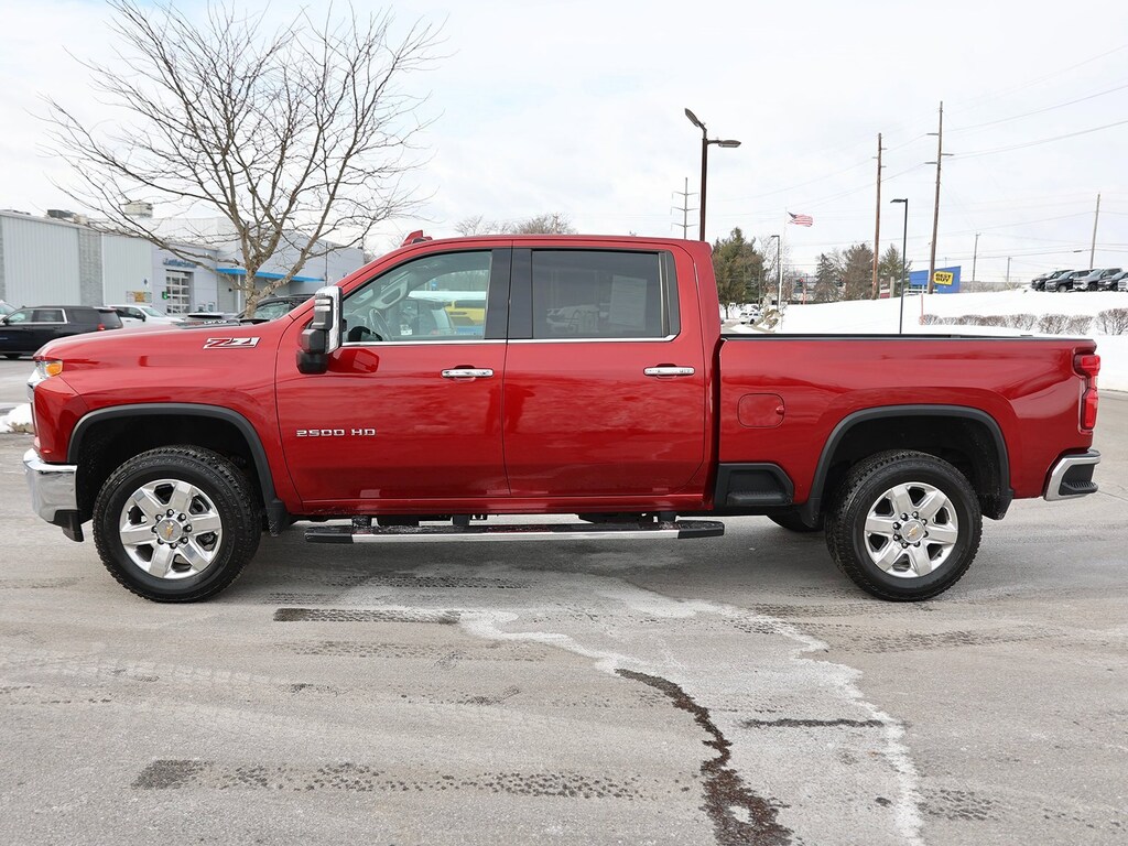 Cherry Red Tintcoat 2022 Chevrolet Silverado 2500HD LTZ 4WD 6-Speed Automatic 6.6L V8 10-Way Power Driver Seat Adjuster w/Lumbar, 10-Way Power Passenger Seat Adjuster w/Lumbar, 12-Volt Rear Auxiliary Power Outlet, 120-Volt Bed Mounted Power Outlet, 120-Volt Instrument Panel Power Outlet, 170 Amp Alternator, 1st & 2nd Row All-Weather Floor Liners (LPO) (AAK), 2 USB Ports (1st Row), 2 USB Ports & 1 SD Card Reader, 2-Speed Active Electronic AutoTrac Transfer Case, 3.73 Rear Axle Ratio, 4-Wheel Disc Brakes, 4.2 Diagonal Color Display Driver Info Center, 6 Speakers, 6-Speaker Audio System, 6 Rectangular Chromed Tubular Assist Steps (LPO), 720 Cold-Cranking Amps Heavy-Duty Battery, ABS brakes, Advanced Trailering System, Air Conditioning, Alloy wheels, AM/FM radio: SiriusXM with 360L, Auto-dimming door mirrors, Auto-Dimming Inside Rear-View Mirror, Auto-dimming Rear-View mirror, Automatic temperature control, Black Chevytec Spray-On Bedliner w/Chevrolet Logo, Bluetooth® For Phone, Brake assist, Bumpers: chrome, Chevrolet Connected Access Capable, Chrome Front Grille, Chrome Mirror Caps, Color-Keyed Carpeting Floor Covering, Compass, Deep-Tinted Glass, Delay-off headlights, Driver door bin, Driver Memory, Driver vanity mirror, Dual Charge-Only USB Ports (2nd Row), Dual front impact airbags, Dual front side impact airbags, Electric Rear-Window Defogger, Electrical Lock Control Steering Column, Electronic Cruise Control w/Set & Resume Speed, Electronic Stability Control, EZ Lift Power Lock & Release Tailgate, Floor-Mounted Center Console, Front 40/20/40 Split-Bench Seats w/Lockable Storage, Front anti-roll bar, Front Bucket Seats, Front Center Armrest w/Storage, Front dual zone A/C, Front fog lights, Front LED Fog Lamps, Front License Plate Kit, Front reading lights, Front Rubberized Vinyl Floor Mats, Front wheel independent suspension, Fully automatic headlights, HD Rear Vision Camera, Heated & Auto-Dim Pwr Vertical Trailering Mirrors, Heated 2nd Row Outboard Seats, Heated door mirrors, Heated Driver & Front Outboard Passenger Seating, Heated front seats, Heated Steering Wheel, Heated steering wheel, Hill Descent Control, Hitch Guidance w/Hitch View, Illuminated entry, Integrated Trailer Brake Controller, Keyless Open & Start, Lane Change Alert w/Side Blind Zone Alert, Leather-Wrapped Steering Wheel, LED Cargo Area Lighting, LED Smoked Amber Roof Marker Lamps, Low tire pressure warning, LTZ Convenience Package, Manual Tilt & Telescoping Steering Column, Memory seat, Multi-Flex Tailgate, Not Equip w/Ventilated Seat Cushion Blower Motor, Not Equipped w/Front & Rear Park Assist, Occupant sensing airbag, Off-Road Suspension, OnStar & Chevrolet Connected Services Capable, Outside temperature display, Overhead airbag, Overhead console, Panic alarm, Passenger door bin, Passenger vanity mirror, Perf Leather-Appointed Front Outboard Seat Trim, Power Door Locks, Power door mirrors, Power driver seat, Power Front Windows w/Driver Express Up/Down, Power Front Windows w/Passenger Express Up/Down, Power passenger seat, Power Rear Windows w/Express Down, Power Sliding Rear Window w/Defogger, Power steering, Power windows, Preferred Equipment Group 1LZ, Premium audio system: Chevrolet Infotainment 3 Plus, Radio: Chevrolet Infotainment 3 Plus System, Rear Cross Traffic Alert, Rear reading lights, Rear Rubberized Vinyl Floor Mats, Rear seat center armrest, Rear step bumper, Rear Wheelhouse Liners, Rear window defroster, Remote keyless entry, Remote Vehicle Starter System, Safety Package, Security system, SiriusXM w/360L, Speed control, Speed-sensing steering, Split folding rear seat, Standard Tailgate, Steering Wheel Audio Controls, Steering wheel mounted audio controls, Suspension Package, Tachometer, Telescoping steering wheel, Tilt steering wheel, Traction control, Trip computer, Turn signal indicator mirrors, Ultrasonic Front & Rear Park Assist, Unauthorized Entry Theft-Deterrent System, Universal Home Remote, Up-Level Rear Seat w/Storage Packag