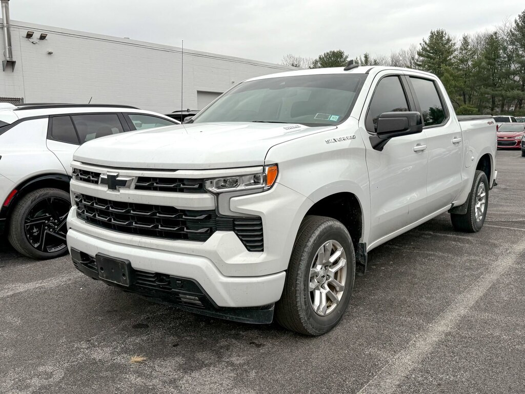 Summit White 2023 Chevrolet Silverado 1500 RST 4WD 10-Speed Automatic 3.0L I6 10-Speed Automatic, 4WD, Black Cloth, 10-Way Power Driver Seat w/Lumbar, 12.3 Multicolor Reconfigurable Digital Display, 120-Volt Bed Mounted Power Outlet, 120-Volt Instrument Panel Power Outlet, 220 Amp Alternator, 3.23 Rear Axle Ratio, 4-Wheel Disc Brakes, 40/20/40 Front Split-Bench Seat, 6 Speakers, 6-Speaker Audio System, ABS brakes, Air Conditioning, All-Star Edition, Alloy wheels, AM/FM radio: SiriusXM with 360L, Apple CarPlay/Android Auto, Auto High-beam Headlights, Auto-Locking Rear Differential, Automatic Emergency Braking, Automatic temperature control, Bluetooth® For Phone, Brake assist, Bumpers: body-color, Chevrolet Connected Access Capable, Cloth Seat Trim, Color-Keyed Carpeting Floor Covering, Compass, Convenience Package, Deep-Tinted Glass, Delay-off headlights, Driver door bin, Driver vanity mirror, Dual front impact airbags, Dual front side impact airbags, Dual Rear USB Ports (Charge Only), Dual-Zone Automatic Climate Control, Electric Rear-Window Defogger, Electrical Steering Column Lock, Electronic Cruise Control, Electronic Stability Control, Engine Block Heater, EZ Lift Power Lock & Release Tailgate, Following Distance Indicator, Forward Collision Alert, Front anti-roll bar, Front Center Armrest w/Storage, Front dual zone A/C, Front fog lights, Front Frame-Mounted Black Recovery Hooks, Front LED Fog Lamps, Front License Plate Kit, Front Pedestrian Braking, Front reading lights, Front Rubberized Vinyl Floor Mats, Front wheel independent suspension, Fully automatic headlights, HD Rear Vision Camera, Heated door mirrors, Heated Driver & Front Outboard Passenger Seats, Heated front seats, Heated Power-Adjustable Outside Mirrors, Heated Steering Wheel, Heated steering wheel, High Gloss Black Mirror Caps, Hitch Guidance, Illuminated entry, Inside Rear-View Mirror w/Tilt, IntelliBeam Automatic High Beam On/Off, Keyless Open & Start, Lane Keep Assist w/Lane Departure Warning, LED Cargo Area Lighting, Low tire pressure warning, Not Equipped w/Functional Cab & Bed Power Outlets, Not Equipped w/Steering Column Lock, Occupant sensing airbag, OnStar & Chevrolet Connected Services Capable, Outside temperature display, Overhead airbag, Overhead console, Panic alarm, Passenger door bin, Passenger vanity mirror, Power door mirrors, Power driver seat, Power Front Windows w/Driver Express Up/Down, Power Front Windows w/Passenger Express Down, Power Rear Windows w/Express Down, Power steering, Power windows, Preferred Equipment Group 1SP, Premium audio system: Chevrolet Infotainment 3 Premium, Radio data system, Radio: Chevrolet Infotainment 3 Premium System, Rear 60/40 Folding Bench Seat (Folds Up), Rear reading lights, Rear Rubberized-Vinyl Floor Mats, Rear step bumper, Rear window defroster, Remote keyless entry, Remote Vehicle Starter System, Security system, SiriusXM w/360L, Speed control, Speed-sensing steering, Split folding rear seat, Standard Suspension Package, Standard Tailgate, Steering Wheel Audio Controls, Steering wheel mounted audio controls, Tachometer, Telescoping steering wheel, Theft Deterrent System (Unauthorized Entry), Tilt steering wheel, Traction control, Trailering Package, Trip computer, Variably intermittent wipers, Voltmeter, Wheels: 18 x 8.5 Bright Silver Painted Aluminum, Wi-Fi Hot Spot Capable, Wireless Phone Projection, Wrapped Steering Wheel, 10-Speed Automatic, 4WD, Black Cloth.