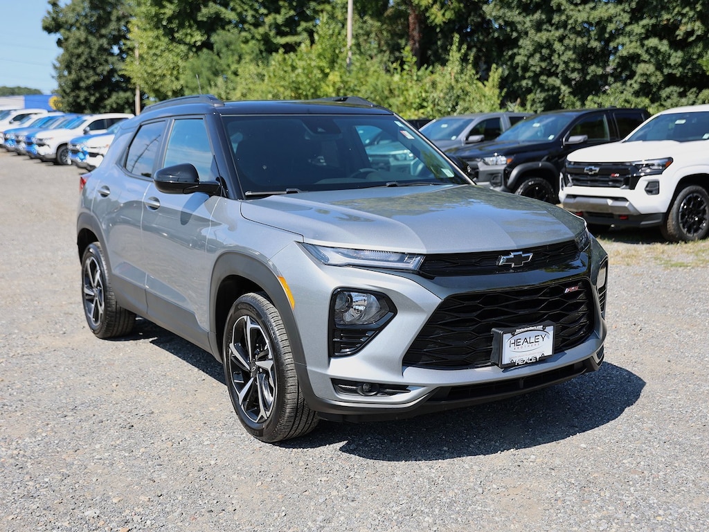 Certified. Sterling Gray Metallic 2023 Chevrolet TrailBlazer RS AWD 9-Speed Automatic 1.3L Ecotec Turbo DOHC SIDI w/VVT 1 Type-A & 1 Type-C USB Charging-Only Ports, 120-Volt Power Outlet, 2-Way Adjustable Front Head Restraints, 2-Way Power Driver Lumbar Seat Adjuster, 3.17 Axle Ratio, 4-Way Manual Front Passenger Seat Adjuster, 4-Wheel Disc Brakes, 6 Speakers, 6-Speaker Audio System Feature w/Amplifier, 7 Diagonal Color Touchscreen, 8-Way Power Driver Seat Adjuster, 8 Diagonal Color Touchscreen Display, ABS brakes, Air Conditioning, Alloy wheels, AM/FM radio: SiriusXM, Auto High-beam Headlights, Brake assist, Bumpers: body-color, Cabin Humidity Sensor, Cloth w/Leatherette Seat Trim, Compass, Convenience Package, Delay-off headlights, Driver & Front Passenger Illuminated Vanity Mirrors, Driver Confidence Package, Driver door bin, Driver vanity mirror, Dual front impact airbags, Dual front side impact airbags, Electronic Stability Control, Emergency communication system: OnStar and Chevrolet connected services capable, Exterior Parking Camera Rear, Flat-Folding Front Passenger Seatback, Front anti-roll bar, Front Bucket Seats, Front Center Armrest, Front fog lights, Front License Plate Bracket, Front reading lights, Front wheel independent suspension, Fully automatic headlights, Heated door mirrors, Heated Driver & Front Passenger Seats, Heated front seats, Heated Steering Wheel, Heated steering wheel, Illuminated entry, Inside Rear-View Auto-Dimming Mirror, Knee airbag, Lane Change Alert w/Side Blind Zone Alert, Leather Shift Knob, Leather steering wheel, Low tire pressure warning, Mosaic Black Metallic Two-Tone Roof, Not Equipped w/Rear Park Assist (060), Occupant sensing airbag, Overhead airbag, Overhead console, Panic alarm, Passenger door bin, Passenger vanity mirror, Power door mirrors, Power driver seat, Power steering, Power windows, Preferred Equipment Group 1RS, Radio data system, Radio: Chevrolet Infotainment 3 System, Rear Cross Traffic Alert, Rear Park Assist, Rear seat center armrest, Rear side impact airbag, Rear window defroster, Rear window wiper, Remote keyless entry, Ride & Handling Suspension, Security system, Single-Zone Auto Climate Control Air Conditioning, SiriusXM Radio, Speed control, Split folding rear seat, Spoiler, Steering wheel mounted audio controls, Tachometer, Telescoping steering wheel, Tilt steering wheel, Traction control, Trip computer, Variably intermittent wipers, Wheels: 18 High Gloss Black Machined Aluminum, Wireless Apple CarPlay/Android Auto.Don't be tricked by below market priced vehicles that charge exorbitant documentation and prep fees. Our pricing is fair, concise and the only documentation fee charged is $175. Check our Google reviews and allow our customers to tell you where you should consider purchasing a pre-owned vehicle in the Tri-State area. 26/30 City/Highway MPGChevrolet Certified Pre-Owned Details:* 172 Point Inspection* Warranty Deductible: $0* Powertrain Limited Warranty: 72 Month/100,000 Mile (whichever comes first) from original in-service date* Transferable Warranty* Limited Warranty: 12 Month/12,000 Mile (whichever comes first) from certified purchase date* 24 months/24,000 miles (whichever comes first) Certified Pre-Owned Scheduled Maintenance Plan and 3 days/150 miles (whichever comes first) Vehicle Exchange Program. SiriusXM 3-month trial subscription.* Vehicle History* Roadside Assistance