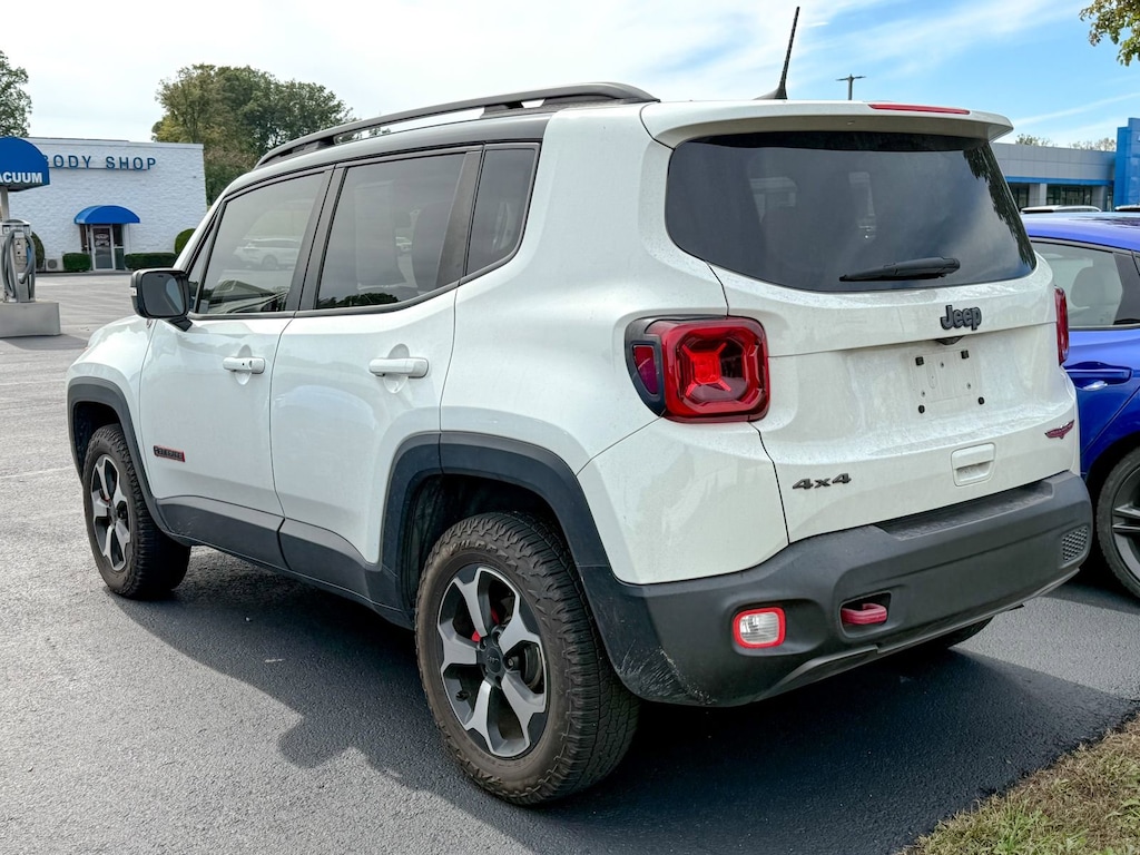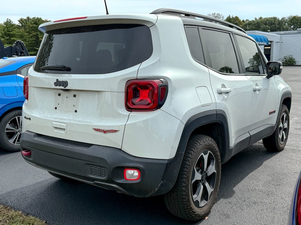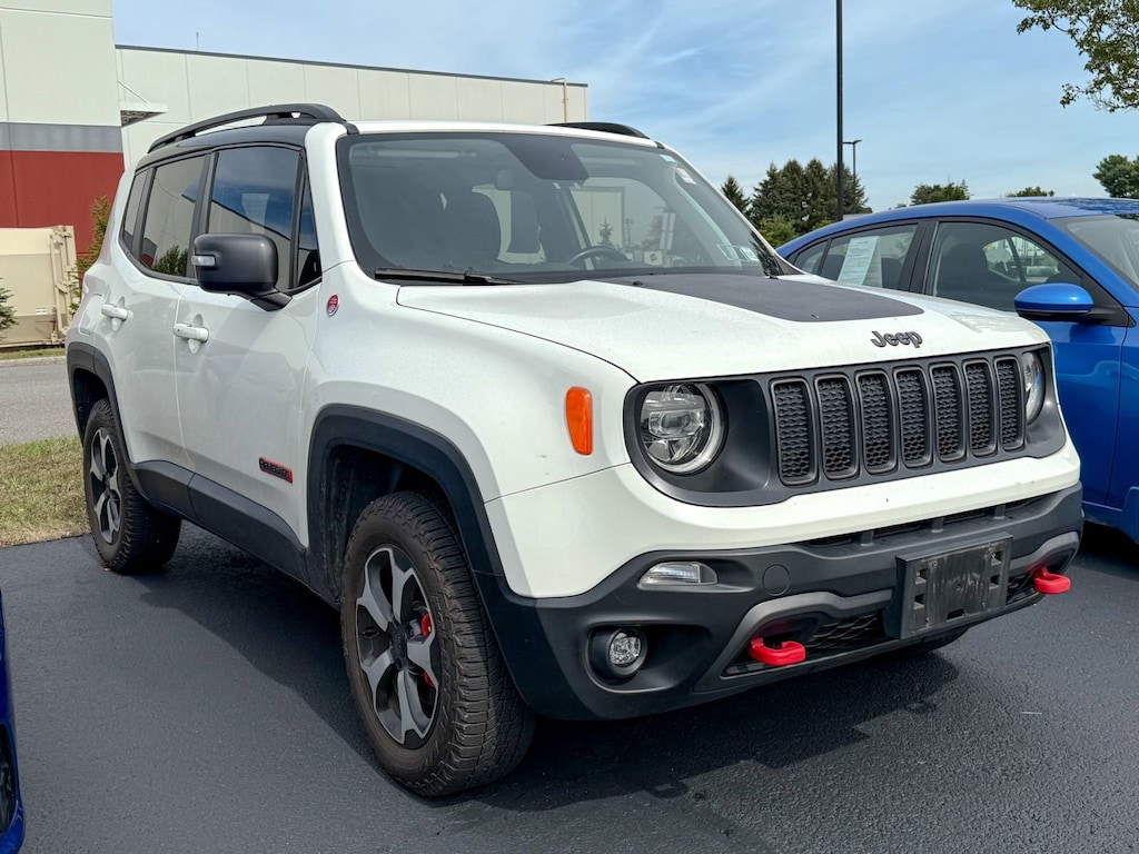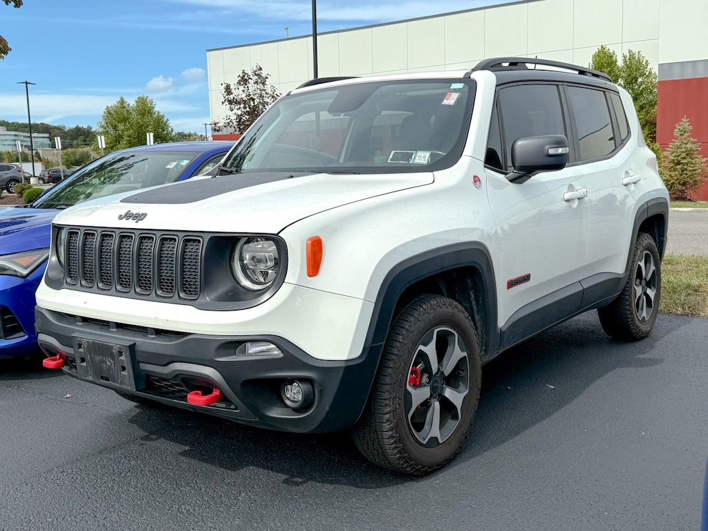 Alpine White Clearcoat 2019 Jeep Renegade Trailhawk 4WD 9-Speed 948TE Automatic 1.3L I4 1-Year SiriusXM Guardian Trial, 17 x 6.5 Aluminum Wheels, 177HP Power Rating, 4-Wheel Disc Brakes, 4.585 Final Drive Ratio, 40/20/40 Rear Seat w/Trunk Pass-Thru, 5-Year SiriusXM Traffic Service, 5-Year SiriusXM Travel Link Service, 6 Speakers, 8.4 Touchscreen Display, ABS brakes, Air Conditioning, Alloy wheels, AM/FM radio: SiriusXM, Anti-whiplash front head restraints, Apple CarPlay/Android Auto, Auto-Dimming Rear-View Mirror, Automatic temperature control, Beats Premium Audio System, Bi-Function LED Projector Headlamps, Brake assist, Compass, Dedicated LED Daytime Running Lamps, Delay-off headlights, Driver door bin, Driver vanity mirror, Dual front impact airbags, Dual front side impact airbags, Dual-Pane Panoramic Power Sunroof, Electronic Stability Control, Four wheel independent suspension, Front anti-roll bar, Front Bucket Seats, Front Center Armrest, Front dual zone A/C, Front fog lights, Front reading lights, Front Seat Back Map Pockets, Fully automatic headlights, GPS Navigation, HD Radio, Heated door mirrors, Heated Front Seats, Heated Steering Wheel, Illuminated entry, Keyless Entry w/Panic Alarm, Knee airbag, Leather Shift Knob, Leather steering wheel, LED Cornering Fog Lamps, LED Lighting Group, LED Taillamps, Low tire pressure warning, Manual Adjust 4-Way Front Passenger Seat, Normal Duty Suspension, Occupant sensing airbag, Outside temperature display, Overhead airbag, Panic alarm, ParkView Rear Back-Up Camera, Passenger door bin, Passenger vanity mirror, Passive Entry Remote Start Package, Power 4-Way Driver Lumbar Adjust, Power Adjust 8-Way Driver Seat, Power door mirrors, Power steering, Power windows, Premium Cloth Low-Back Bucket Seats, Premium Leather Group For Trailhawk, Premium Leather Trimmed Bucket Seats, Quick Order Package 22C, Radio data system, Radio: Uconnect 4 w/7 Display, Radio: Uconnect 4C Nav w/8.4 Display, Rain sensing wipers, Rear anti-roll bar, Rear window defroster, Rear window wiper, Remote keyless entry, Roof rack: rails only, SiriusXM Traffic Plus, SiriusXM Travel Link, Speed control, Split folding rear seat, Spoiler, Steering wheel mounted audio controls, Stop-Start Multiple VSM System, Tachometer, Telescoping steering wheel, Tilt steering wheel, Traction control, Trip computer, Turn signal indicator mirrors, Uconnect 8.4 Nav Group, Variably intermittent wipers, Voltmeter, Windshield Wiper De-Icer.