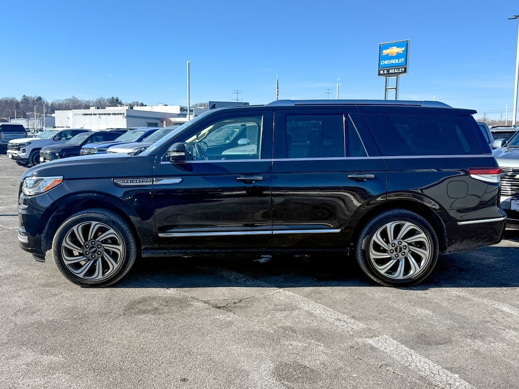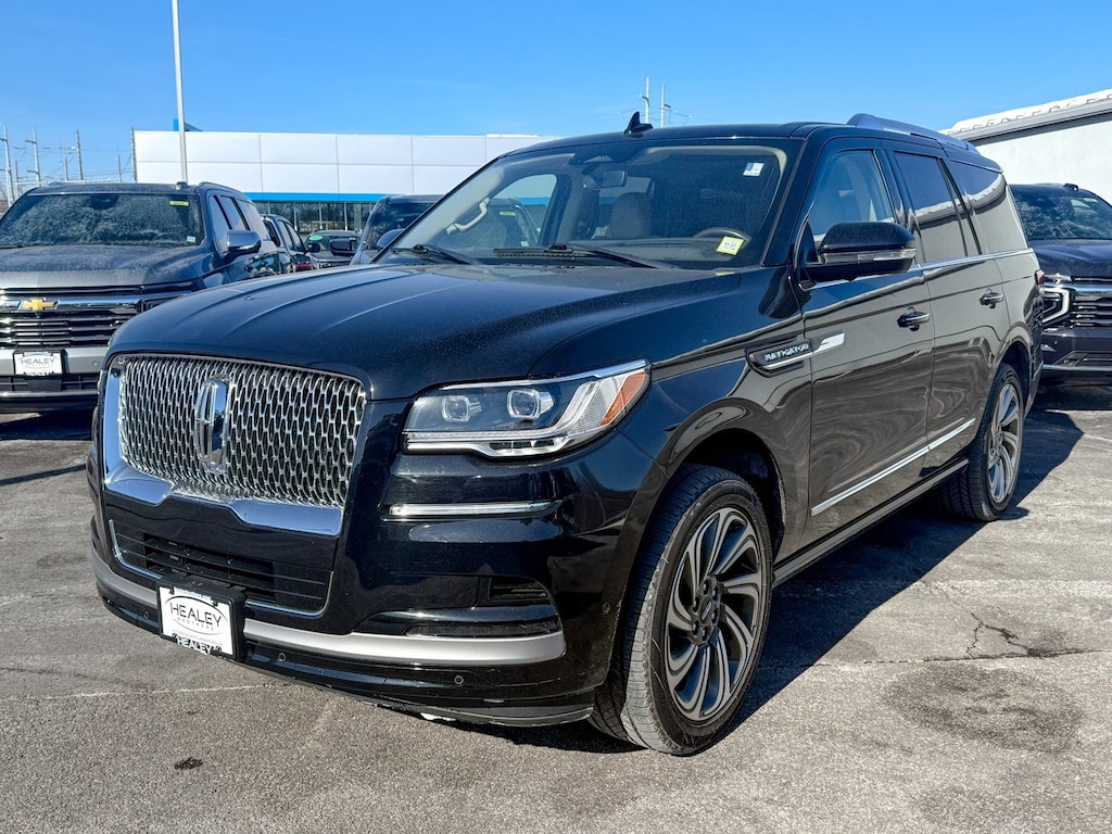 Infinite Black Metallic Clearcoat 2022 Lincoln Navigator Reserve 4WD 10-Speed Automatic V6 Illuminated 1st & 2nd Row Seat Belts, Lincoln Lit Star in Grille, Luxury Package, Perfect Position Seats (30-Way) w/Active Motion, Power moonroof: Panoramic Vista Roof, Revel Ultima 3D Audio System w/28 Speakers, 14 Speakers, 2nd Row Htd/Vent Enhanced Massage Seats w/Console, 3.73 Axle Ratio, 3rd row seats: split-bench, 4-Wheel Disc Brakes, ABS brakes, Adaptive suspension, Adjustable pedals, Air Conditioning, All-Weather Floor Liners w/Carpet Floor Mats, Alloy wheels, AM/FM radio: SiriusXM with 360L, Audio memory, Auto High-beam Headlights, Auto Start-Stop Technology, Auto tilt-away steering wheel, Auto-dimming door mirrors, Auto-dimming Rear-View mirror, Auto-leveling suspension, Automatic temperature control, Bodyside moldings, Brake assist, Bumpers: body-color, Compass, Delay-off headlights, Driver door bin, Driver vanity mirror, Driver's Seat Mounted Armrest, Dual front impact airbags, Dual front side impact airbags, Electronic Stability Control, Emergency communication system: 911 Assist, Equipment Group 201A Reserve I, Exterior Parking Camera Rear, Four wheel independent suspension, Front anti-roll bar, Front Bucket Seats, Front dual zone A/C, Front fog lights, Front reading lights, Fully automatic headlights, Garage door transmitter, Genuine wood dashboard insert, Genuine wood door panel insert, Head restraints memory, Heads-Up Display, Heated door mirrors, Heated front seats, Heated rear seats, Heated steering wheel, HVAC memory, Illuminated entry, Leather steering wheel, Low tire pressure warning, Memory seat, Navigation system: Connected Navigation (3-year trial), Occupant sensing airbag, Outside temperature display, Overhead airbag, Overhead console, Panic alarm, Passenger door bin, Passenger seat mounted armrest, Passenger vanity mirror, Pedal memory, Power adjustable rear head restraints, Power door mirrors, Power driver seat, Power Liftgate, Power passenger seat, Power steering, Power windows, Prem Lthr Auto Htd/Ventiltd Perfect Position Seats, Radio data system, Radio: Revel AM/FM/HD/MP3 Audio System, Rain sensing wipers, Rear air conditioning, Rear anti-roll bar, Rear audio controls, Rear reading lights, Rear window defroster, Rear window wiper, Reclining 3rd row seat, Remote keyless entry, Security system, SiriusXM w/360L, Speed control, Speed-sensing steering, Speed-Sensitive Wipers, Split folding rear seat, Spoiler, Steering wheel memory, Steering wheel mounted audio controls, SYNC 4 Communications & Entertainment System, Tachometer, Telescoping steering wheel, Tilt steering wheel, Traction control, Trip computer, Turn signal indicator mirrors, Variably intermittent wipers, Ventilated front seats, Ventilated rear seats, Voice-Activated Touchscreen Navigation System, Wheels: 22 Bright Machined Aluminum, One Owner, Illuminated 1st & 2nd Row Seat Belts, Lincoln Lit Star in Grille, Luxury Package, Perfect Position Seats (30-Way) w/Active Motion, Power moonroof: Panoramic Vista Roof, Revel Ultima 3D Audio System w/28 Speakers.