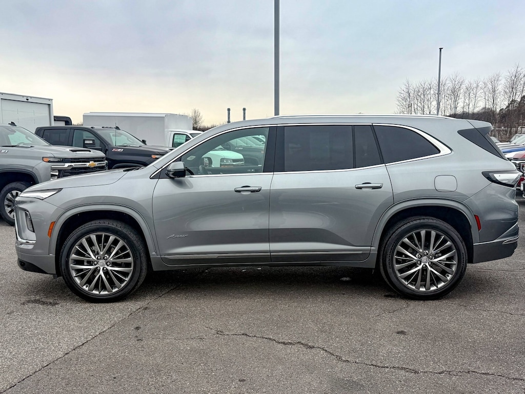 Certified. Moonstone Gray Metallic 2025 Buick Enclave Avenir AWD 8-Speed Automatic 2.5L DOHC 16 Speakers, 1st and 2nd Row All-Weather Floor Liners, 3rd Row All-Weather Floor Liner, 3rd row seats: split-bench, 4-Wheel Disc Brakes, ABS brakes, Adaptive suspension, Air Conditioning, Alloy wheels, AM/FM radio: SiriusXM with 360L, Auto High-beam Headlights, Auto tilt-away steering wheel, Auto-dimming door mirrors, Auto-dimming Rear-View mirror, Automatic temperature control, Bose Performance 16-Speaker Audio System, Brake assist, Bumpers: body-color, Compass, Delay-off headlights, Driver 4-Way Power Lumbar Seat Adjuster, Driver 8-Way Power Seat Adjuster, Driver door bin, Driver Massage Control with 4-Way Power Lumbar, Driver vanity mirror, Dual front impact airbags, Dual front side impact airbags, Electronic Stability Control, Emergency communication system: OnStar and Buick connected services capable, Floor Liner Package, Four wheel independent suspension, Front anti-roll bar, Front Bucket Seats, Front Center Armrest, Front dual zone A/C, Front Mounting License Plate Bracket Package, Front Passenger 4-Way Power Lumbar Seat Adjuster, Front Passenger 6-Way Power Seat Adjuster, Front Passenger Massage Control with 4-Way Power Lumbar, Front reading lights, Fully automatic headlights, Garage door transmitter, Heads-Up Display, Heated door mirrors, Heated Driver and Front Passenger Seats, Heated front seats, Heated rear seats, Heated steering wheel, Illuminated entry, Leather steering wheel, Low tire pressure warning, Memory seat, Memory Settings, Navigation System, Occupant sensing airbag, Outside temperature display, Overhead airbag, Overhead console, Panic alarm, Passenger door bin, Passenger vanity mirror, Power door mirrors, Power driver seat, Power Liftgate, Power moonroof, Power passenger seat, Power steering, Power windows, Preferred Equipment Group 1SP, Premium audio system: Buick Infotainment System, Quilted and Perforated Leather-Appointed Seat Trim, Radio data system, Radio: Infotainment Center, Rain sensing wipers, Rear air conditioning, Rear anti-roll bar, Rear reading lights, Rear side impact airbag, Rear window defroster, Rear window wiper, Remote keyless entry, Security system, SiriusXM with 360L Trial Subscription, Speed control, Speed-sensing steering, Spoiler, Steering wheel memory, Steering wheel mounted audio controls, Tachometer, Telescoping steering wheel, Tilt steering wheel, Traction control, Trip computer, Turn signal indicator mirrors, Variably intermittent wipers, Ventilated Driver and Front Passenger Seats, Ventilated front seats, Ventilated rear seats, Voltmeter, Wheels: 22 Alloy with Avenir Pearl Nickel Finish, Wireless Apple CarPlay, Wireless Google Android Auto.
