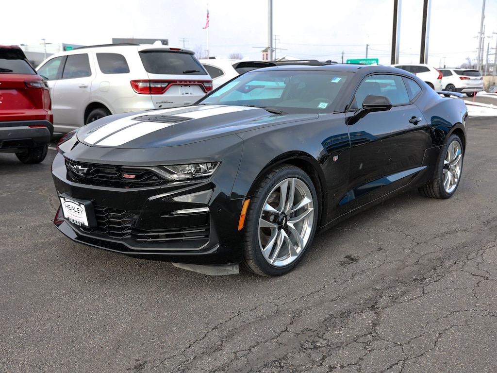 Certified. Black 2020 Chevrolet Camaro SS 1SS RWD 6-Speed Manual 6.2L V8 4-Wheel Disc Brakes, 6 Speakers, 6-Speaker Audio System Feature, 6-Way Power Front Passenger Seat Adjuster, 8-Way Power Driver Seat Adjuster, ABS brakes, Air Conditioning, Alloy wheels, Apple CarPlay/Android Auto, Automatic temperature control, Bluetooth® For Phone, Brake assist, Bumpers: body-color, Cloth Seat Trim, Compass, Delay-off headlights, Driver door bin, Driver vanity mirror, Dual front impact airbags, Dual front side impact airbags, Electronic Stability Control, Exterior Parking Camera Rear, Four wheel independent suspension, Front anti-roll bar, Front Bucket Seats, Front Center Armrest, Front License Plate Bracket, Front reading lights, Front Sport Bucket Seats, Fully automatic headlights, Illuminated entry, Knee airbag, Leather Shift Knob, Low tire pressure warning, Occupant sensing airbag, Overhead airbag, Panic alarm, Passenger door bin, Passenger vanity mirror, Power door mirrors, Power driver seat, Power passenger seat, Power steering, Power windows, Premium audio system: Chevrolet Infotainment System, Radio data system, Radio: Chevrolet Infotainment 3 Plus System, Rear anti-roll bar, Rear window defroster, Remote keyless entry, Security system, SiriusXM w/360L, Speed control, Speed-sensing steering, Steering wheel mounted audio controls, Tachometer, Telescoping steering wheel, Tilt steering wheel, Traction control, Trip computer, Variably intermittent wipers, Voltmeter, White Pearl Rally Stripes, One Owner.