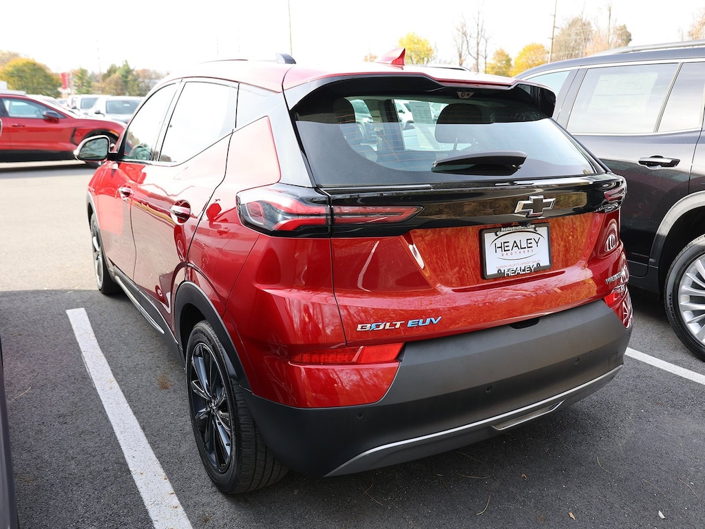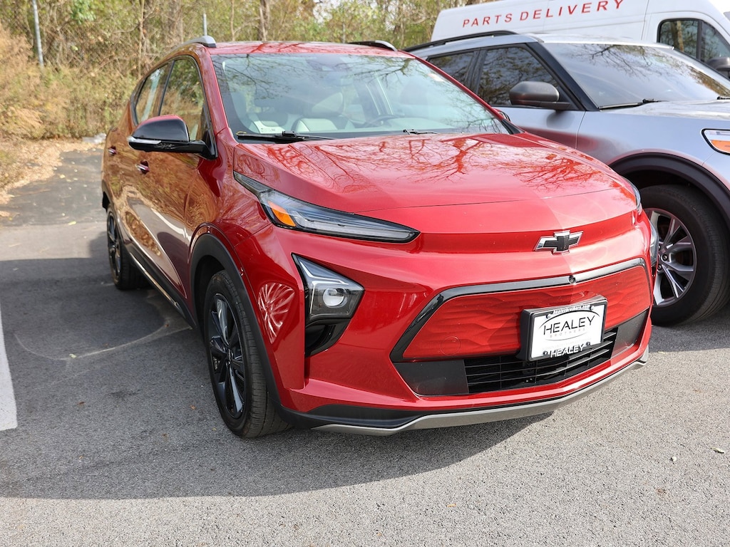 Cherry Red Tintcoat 2022 Chevrolet Bolt EUV Premier FWD 1-Speed Automatic Electric Motor 2-Way Power Driver Lumbar Seat Adjuster, 4-Wheel Disc Brakes, 6 Speakers, 6-Speaker Audio System, 6-Way Manual Passenger Seat Adjuster, 7.05 Final Drive Axle Ratio, 8-Way Power Driver Seat Adjuster, ABS brakes, Air Conditioning, Alloy wheels, AM/FM radio: SiriusXM with 360L, Apple CarPlay/Android Auto, Auto High-beam Headlights, Auto-dimming Rear-View mirror, Automatic temperature control, Bose Premium 7-Speaker Audio System, Brake assist, Bumpers: body-color, Compass, Delay-off headlights, Driver door bin, Driver vanity mirror, Dual front impact airbags, Dual front side impact airbags, Electronic Stability Control, Emergency communication system: OnStar and Chevrolet connected services capable, Enhanced Automatic Emergency Braking, Front anti-roll bar, Front Bucket Seats, Front Center Armrest, Front License Plate Bracket, Front reading lights, Front wheel independent suspension, Fully automatic headlights, Heated door mirrors, Heated Driver & Front Passenger Seats, Heated front seats, Heated rear seats, Heated steering wheel, Illuminated Charge Port (LPO), Illuminated entry, Knee airbag, Launch Edition, Low tire pressure warning, Occupant sensing airbag, Outside temperature display, Overhead airbag, Overhead console, Panic alarm, Passenger door bin, Passenger vanity mirror, Perforated Leather-Appointed Seat Trim, Performance Ride & Handling Suspension, Power door mirrors, Power driver seat, Power Dual Panel Panoramic Sunroof w/Slide, Power steering, Power windows, Preferred Equipment Group 2LZ, Premier Badge, Premium audio system: Chevrolet Infotainment 3 Plus, Radio: Chevrolet Infotainment 3 Plus System, Radio: Chevrolet Infotainment 3 Plus System w/Navi, Rain sensing wipers, Rear reading lights, Rear seat center armrest, Rear side impact airbag, Rear window defroster, Rear window wiper, Remote keyless entry, Roof rack: rails only, Security system, SiriusXM Radio w/360L, Speed control, Split folding rear seat, Steering wheel mounted audio controls, Sun & Sound Package, Super Cruise, Super Cruise Package, Telescoping steering wheel, Tilt steering wheel, Traction control, Trip computer, Turn signal indicator mirrors, Variably intermittent wipers, Ventilated Driver Seat, Ventilated Front Passenger Seat, Ventilated front seats, Wheels: 17 Dark Android Painted Aluminum, Wheels: 17 Machined-Face Aluminum.