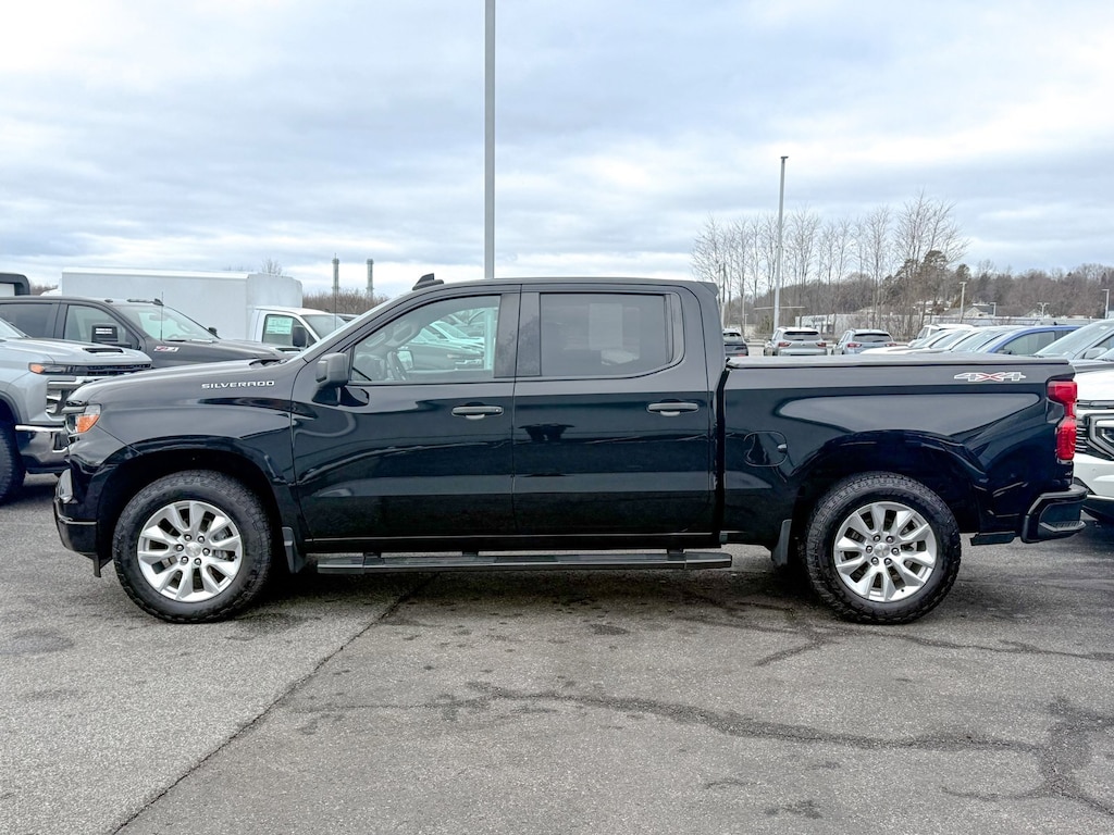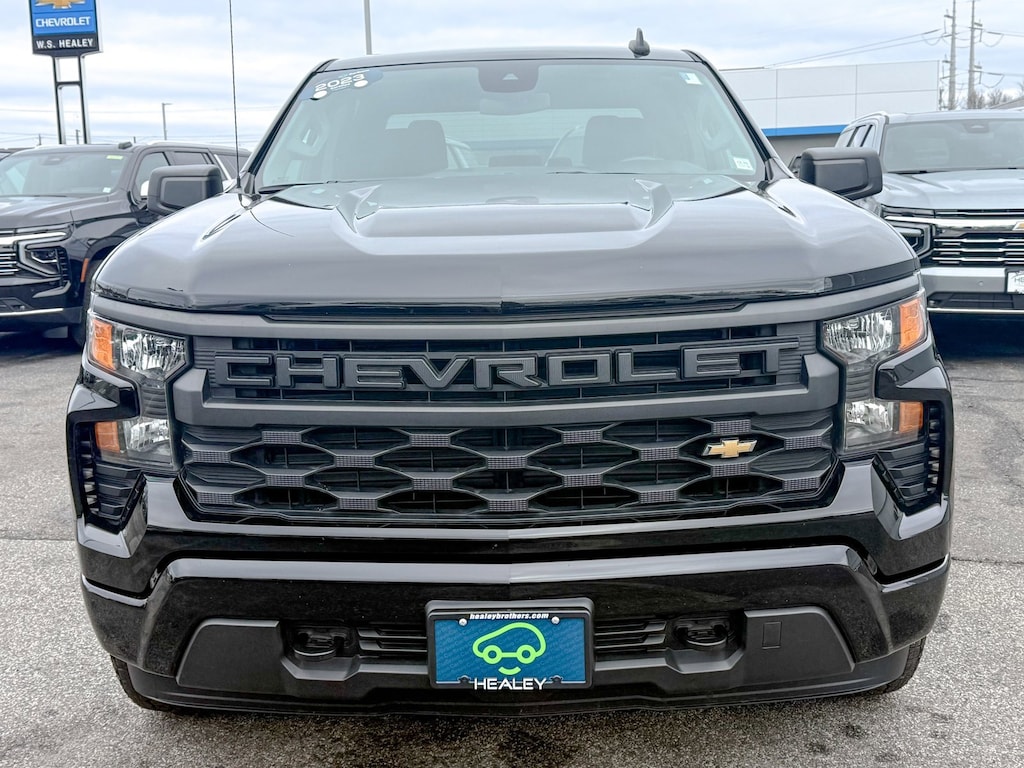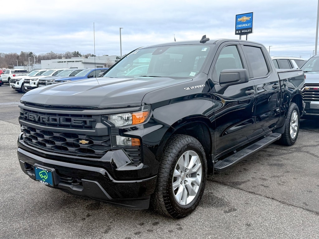 Certified. Black 2023 Chevrolet Silverado 1500 Custom 4WD 8-Speed Automatic 2.7L Turbo Custom Convenience Package, Custom Value Package, Electric Rear-Window Defogger, EZ Lift Power Lock & Release Tailgate, LED Cargo Area Lighting, Remote Vehicle Starter System, Theft Deterrent System (Unauthorized Entry), Trailering Package, 10-Way Power Driver Seat w/Lumbar, 120-Volt Bed Mounted Power Outlet, 120-Volt Instrument Panel Power Outlet, 3.42 Rear Axle Ratio, 3.5 Monochromatic Display Driver Info Center, 4-Wheel Disc Brakes, 40/20/40 Front Split-Bench Seat, 6 Speakers, 6-Speaker Audio System, ABS brakes, Air Conditioning, Alloy wheels, AM/FM radio: SiriusXM, Apple CarPlay/Android Auto, Auto High-beam Headlights, Automatic Emergency Braking, Bluetooth® For Phone, Brake assist, Bumpers: body-color, Chevrolet Connected Access Capable, Cloth Rear Seat w/Storage Package, Cloth Seat Trim, Color-Keyed Carpeting Floor Covering, Compass, Deep-Tinted Glass, Delay-off headlights, Driver door bin, Driver vanity mirror, Dual front impact airbags, Dual front side impact airbags, Dual Rear USB Ports (Charge Only), Electrical Steering Column Lock, Electronic Cruise Control, Electronic Stability Control, Following Distance Indicator, Forward Collision Alert, Front anti-roll bar, Front Center Armrest w/Storage, Front Frame-Mounted Black Recovery Hooks, Front License Plate Kit, Front Pedestrian Braking, Front reading lights, Front Rubberized Vinyl Floor Mats, Front wheel independent suspension, Fully automatic headlights, HD Rear Vision Camera, Heated door mirrors, High Capacity Suspension Package, Hitch Guidance, Illuminated entry, IntelliBeam Automatic High Beam On/Off, Lane Keep Assist w/Lane Departure Warning, Low tire pressure warning, Manual Tilt Wheel Steering Column, Not Equipped w/Functional Cab & Bed Power Outlets, Not Equipped w/Rear USB Ports, Not Equipped w/Steering Column Lock, Occupant sensing airbag, OnStar & Chevrolet Connected Services Capable, Outside temperature display, Overhead airbag, Overhead console, Panic alarm, Passenger door bin, Passenger vanity mirror, Power door mirrors, Power driver seat, Power Front Windows w/Driver Express Up/Down, Power Front Windows w/Passenger Express Down, Power Rear Windows w/Express Down, Power steering, Power windows, Preferred Equipment Group 1CX, Premium audio system: Chevrolet Infotainment 3, Radio data system, Radio: Chevrolet Infotainment 3 System, Rear 60/40 Folding Bench Seat (Folds Up), Rear reading lights, Rear Rubberized-Vinyl Floor Mats, Rear step bumper, Rear window defroster, Remote Keyless Entry, Remote keyless entry, Security system, SiriusXM Radio, Speed control, Speed-sensing steering, Split folding rear seat, Standard Tailgate, Tachometer, Tilt steering wheel, Traction control, Trip computer, Variably intermittent wipers, Voltmeter, Wheels: 20 x 9 Bright Silver Painted Aluminum, Wi-Fi Hot Spot Capable, Wireless Phone Projection, One Owner, Custom Convenience Package, Custom Value Package, Electric Rear-Window Defogger, EZ Lift Power Lock & Release Tailgate, LED Cargo Area Lighting, Remote Vehicle Starter System, Theft Deterrent System (Unauthorized Entry), Trailering Package.