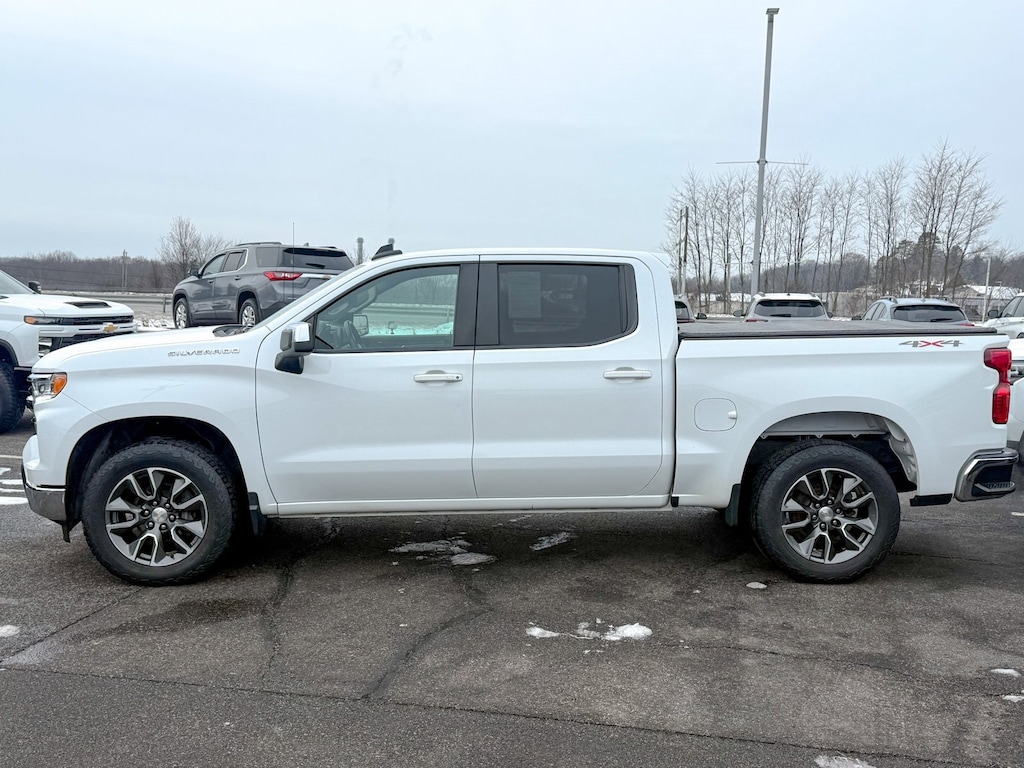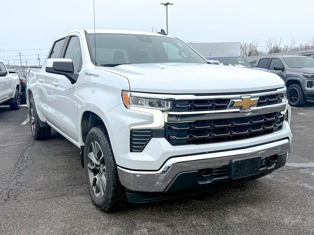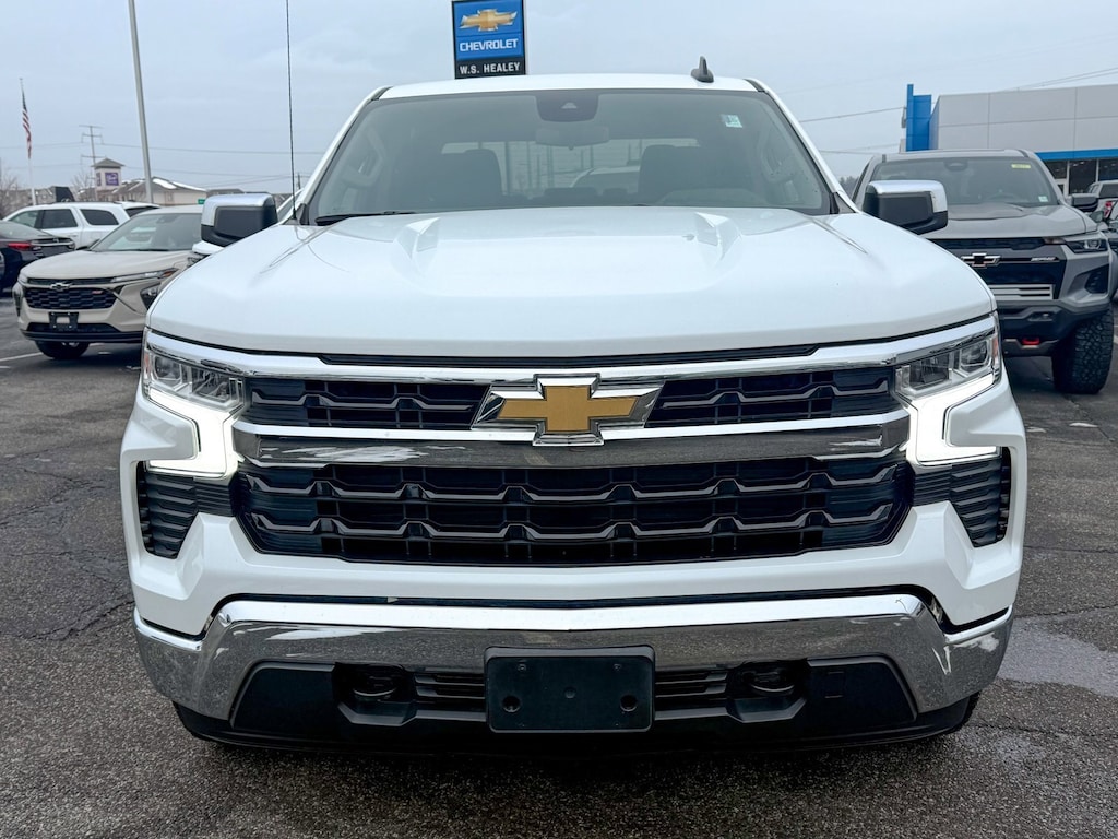 Certified. Summit White 2023 Chevrolet Silverado 1500 LT 4WD 8-Speed Automatic 2.7L Turbo 10-Way Power Driver Seat w/Lumbar, 120-Volt Instrument Panel Power Outlet, Convenience Package, Dual Rear USB Ports (Charge Only), Dual-Zone Automatic Climate Control, Heated Driver & Front Outboard Passenger Seats, Heated Steering Wheel, Hitch Guidance, Keyless Open & Start, Trailering Package, Wrapped Steering Wheel, 12.3 Multicolor Reconfigurable Digital Display, 120-Volt Bed Mounted Power Outlet, 3.42 Rear Axle Ratio, 4-Wheel Disc Brakes, 40/20/40 Front Split-Bench Seat, 6 Speakers, 6-Speaker Audio System, ABS brakes, Air Conditioning, All-Star Edition, Alloy wheels, AM/FM radio: SiriusXM with 360L, Apple CarPlay/Android Auto, Auto High-beam Headlights, Auto-Locking Rear Differential, Automatic Emergency Braking, Automatic temperature control, Bluetooth® For Phone, Brake assist, Bumpers: chrome, Chevrolet Connected Access Capable, Chrome Mirror Caps, Cloth Seat Trim, Color-Keyed Carpeting Floor Covering, Compass, Deep-Tinted Glass, Delay-off headlights, Driver door bin, Driver vanity mirror, Dual front impact airbags, Dual front side impact airbags, Electric Rear-Window Defogger, Electrical Steering Column Lock, Electronic Cruise Control, Electronic Stability Control, Following Distance Indicator, Forward Collision Alert, Front anti-roll bar, Front Center Armrest w/Storage, Front dual zone A/C, Front Frame-Mounted Black Recovery Hooks, Front License Plate Kit, Front Pedestrian Braking, Front reading lights, Front wheel independent suspension, Fully automatic headlights, HD Rear Vision Camera, Heated door mirrors, Heated front seats, Heated steering wheel, High Capacity Suspension Package, Illuminated entry, IntelliBeam Automatic High Beam On/Off, Lane Keep Assist w/Lane Departure Warning, LED Cargo Area Lighting, Low tire pressure warning, Not Equipped w/Steering Column Lock, Occupant sensing airbag, OnStar & Chevrolet Connected Services Capable, Outside temperature display, Overhead airbag, Overhead console, Panic alarm, Passenger door bin, Passenger vanity mirror, Power door mirrors, Power driver seat, Power Front Windows w/Driver Express Up/Down, Power Front Windows w/Passenger Express Down, Power Rear Windows w/Express Down, Power steering, Power windows, Premium audio system: Chevrolet Infotainment 3 Premium, Radio data system, Radio: Chevrolet Infotainment 3 Premium System, Rear 60/40 Folding Bench Seat (Folds Up), Rear reading lights, Rear step bumper, Rear window defroster, Remote keyless entry, Remote Vehicle Starter System, Security system, SiriusXM w/360L, Speed control, Speed-sensing steering, Split folding rear seat, Standard Suspension Package, Steering Wheel Audio Controls, Steering wheel mounted audio controls, Tachometer, Telescoping steering wheel, Theft Deterrent System (Unauthorized Entry), Tilt steering wheel, Traction control, Trip computer, Variably intermittent wipers, Voltmeter, Wheels: 18 x 8.5 Bright Silver Painted Aluminum, Wheels: 20 x 9 Painted Aluminum, Wi-Fi Hot Spot Capable, Wireless Phone Projection, 10-Way Power Driver Seat w/Lumbar, 120-Volt Instrument Panel Power Outlet, Convenience Package, Dual Rear USB Ports (Charge Only), Dual-Zone Automatic Climate Control, Heated Driver & Front Outboard Passenger Seats, Heated Steering Wheel, Hitch Guidance, Keyless Open & Start, Trailering Package, Wrapped Steering Wheel.