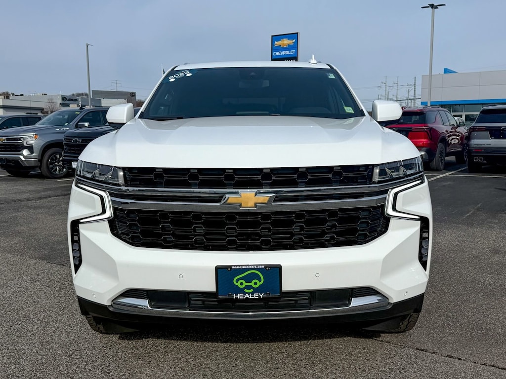 Certified. Summit White 2023 Chevrolet Tahoe LS 4WD 10-Speed Automatic with Overdrive EcoTec3 5.3L V8 Driver Alert Package, Lane Change Alert w/Side Blind Zone Alert, Rear Cross Traffic Alert, 1st & 2nd Row Color-Keyed Carpeted Floor Mats, 3.23 Rear Axle Ratio, 3rd row seats: split-bench, 4-Wheel Disc Brakes, 6 Speakers, 6-Speaker Audio System Feature, ABS brakes, Air Conditioning, Alloy wheels, AM/FM radio: SiriusXM with 360L, Apple CarPlay/Android Auto, Auto High-beam Headlights, Automatic temperature control, Brake assist, Bumpers: body-color, Color-Keyed Carpeting Floor Covering, Compass, Delay-off headlights, Driver & Front Outboard Passenger Airbags, Driver door bin, Driver vanity mirror, Dual front impact airbags, Dual front side impact airbags, Electronic Stability Control, Emergency communication system: OnStar and Chevrolet connected services capable, Floor Console w/Storage Area, Four wheel independent suspension, Front anti-roll bar, Front Bucket Seats, Front Center Armrest, Front dual zone A/C, Front High-Back Reclining Bucket Seats, Front reading lights, Fully automatic headlights, Heated door mirrors, Illuminated entry, Infotainment Display, LED Daytime Running Lamps, Low tire pressure warning, Occupant sensing airbag, Outside temperature display, Overhead airbag, Overhead console, Panic alarm, Passenger door bin, Passenger vanity mirror, Power door mirrors, Power driver seat, Power passenger seat, Power steering, Power windows, Preferred Equipment Group 1LS, Premium Cloth Seat Trim, Premium Smooth Ride Suspension, Radio: Chevrolet Infotainment 3 System, Rain sensing wipers, Rear air conditioning, Rear anti-roll bar, Rear reading lights, Rear seat center armrest, Rear window defroster, Rear window wiper, Remote keyless entry, Remote Start, Roof rack: rails only, Security system, SiriusXM Radio w/360L, Speed control, Speed-sensing steering, Split folding rear seat, Spoiler, Steering wheel mounted audio controls, Tachometer, Telescoping steering wheel, Tilt steering wheel, Traction control, Trip computer, Variably intermittent wipers, Voltmeter, Wheels: 18 x 8.5 Bright Silver Painted Aluminum, Wheels: 20 x 9 Painted Aluminum, Wrapped Steering Wheel, Driver Alert Package, Lane Change Alert w/Side Blind Zone Alert, Rear Cross Traffic Alert.