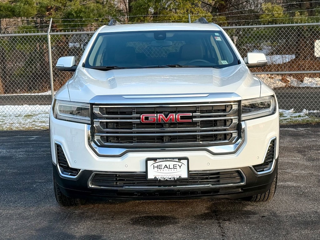 Summit White 2023 GMC Acadia SLE AWD 9-Speed Automatic 2.0L Turbocharged AWD, Jet Black Cloth, 120-Volt Power Outlet, 3 Years of OnStar & Connected Services Plan (DISC), 3.47 Final Drive Axle Ratio, 3rd row seats: split-bench, 4-Way Manual Driver Seat Adjuster, 4-Way Manual Passenger Seat Adjuster, 4-Wheel Disc Brakes, 6 Speakers, 6-Passenger (2-2-2 Seating Configuration), 6-Speaker Audio System Feature, 8-Way Power Driver Seat Adjuster, ABS brakes, Air Conditioning, Alloy wheels, AM/FM radio: SiriusXM, Apple CarPlay/Android Auto, Auto High-beam Headlights, Automatic temperature control, Brake assist, Brushed Aluminum Roof Rails, Bumpers: body-color, Compass, Delay-off headlights, Driver Convenience Package, Driver door bin, Driver vanity mirror, Dual front impact airbags, Dual front side impact airbags, Electronic Stability Control, Emergency communication system: OnStar and GMC connected services capable, Four wheel independent suspension, Front anti-roll bar, Front Bucket Seats, Front Center Armrest, Front dual zone A/C, Front License Plate Bracket, Front reading lights, Fully automatic headlights, Hands Free Power Programmable Liftgate, Heated door mirrors, Heated Driver & Front Passenger Seats, Illuminated entry, Infotainment Package, Knee airbag, Low tire pressure warning, Not Equipped w/Front & Rear Park Assist, Occupant sensing airbag, Outside temperature display, Overhead airbag, Overhead console, Panic alarm, Passenger door bin, Passenger vanity mirror, Power door mirrors, Power Driver Lumbar Control Seat Adjuster, Power steering, Power windows, Preferred Equipment Group 3SA, Premium Cloth Seat Trim, Radio data system, Radio: AM/FM 8 Diagonal Multi-Touch Navigation, Radio: AM/FM w/8 Diagonal Multi-Touch Display, Rear air conditioning, Rear anti-roll bar, Rear reading lights, Rear window defroster, Rear window wiper, Remote keyless entry, Remote Start, Security system, SiriusXM Radio, Speed control, Speed-sensing steering, Spoiler, Steering wheel mounted audio controls, Tachometer, Telescoping steering wheel, Tilt steering wheel, Traction control, Trip computer, Turn signal indicator mirrors, Variably intermittent wipers, Voltmeter, Wheels: 18 Machined Aluminum w/Dark Accents, Wireless Apple CarPlay/Wireless Android Auto, AWD, Jet Black Cloth.