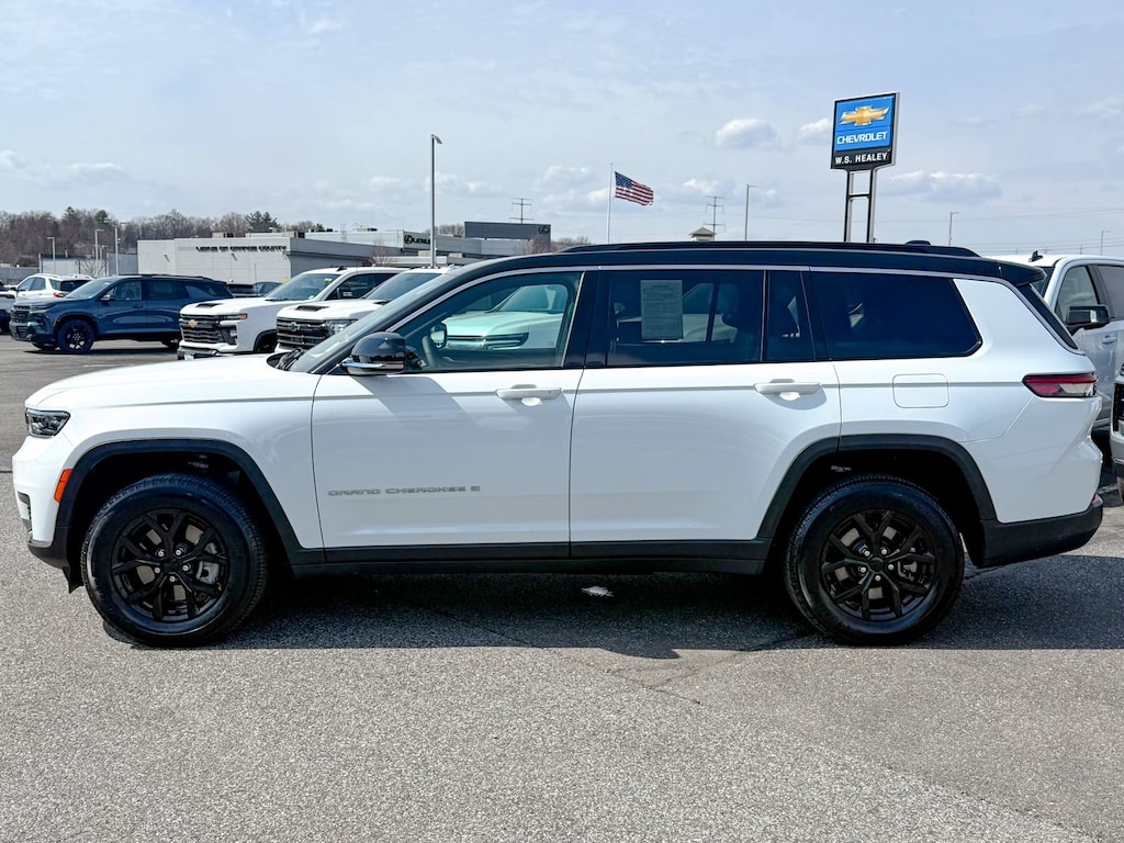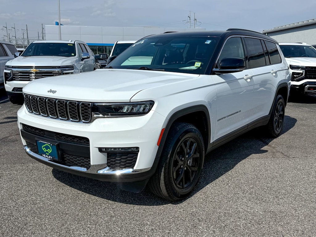Certified. Bright White Clearcoat 2025 Jeep Grand Cherokee L Limited 4WD 8-Speed Automatic 3.6L V6 24V VVT Dual-Pane Panoramic Sunroof, Interior Rear Facing Camera, 3.45 Rear Axle Ratio, 3rd row seats: split-bench, 4-Wheel Disc Brakes, 6 Speakers, ABS brakes, Active Noise Control System, Air Conditioning, Alloy wheels, AM/FM radio: SiriusXM with 360L, Anti-whiplash front head restraints, Audio memory, Auto High-beam Headlights, Automatic temperature control, Brake assist, Bumpers: body-color, Capri Leatherette Seats, Compass, Delay-off headlights, Driver door bin, Driver vanity mirror, Dual front impact airbags, Dual front side impact airbags, Electronic Stability Control, Emergency communication system, Four wheel independent suspension, Front anti-roll bar, Front Bucket Seats, Front Center Armrest w/Storage, Front dual zone A/C, Front fog lights, Front License Plate Bracket, Front reading lights, Fully automatic headlights, Garage door transmitter, Heated door mirrors, Heated front seats, Heated rear seats, Heated steering wheel, Illuminated entry, Knee airbag, Low tire pressure warning, Manual Fold Seatbacks, Memory seat, Model Year Tracking, MOPAR Finishing Package, MOPAR Front Splash Guards, MOPAR Paint Protection Film, MOPAR Rear Splash Guards with Jeep Logo, Navigation System, Normal Duty Suspension, Occupant sensing airbag, Outside temperature display, Overhead airbag, Overhead console, Panic alarm, ParkView Rear Back-Up Camera, Passenger door bin, Passenger vanity mirror, Power door mirrors, Power driver seat, Power Liftgate, Power passenger seat, Power steering, Power windows, Quick Order Package 22E, Radio data system, Radio: Uconnect 5 Nav with 10.1 Display, Rear air conditioning, Rear anti-roll bar, Rear reading lights, Rear window defroster, Rear window wiper, Reclining 3rd row seat, Remote keyless entry, Security system, Speed control, Speed-Sensitive Wipers, Split folding rear seat, Spoiler, Steering wheel mounted audio controls, Tachometer, Telescoping steering wheel, Tilt steering wheel, Traction control, Trip computer, Turn signal indicator mirrors, Variably intermittent wipers, Voltmeter, Wheels: 18 x 8.0 Polished/Painted Aluminum, Dual-Pane Panoramic Sunroof, Interior Rear Facing Camera.